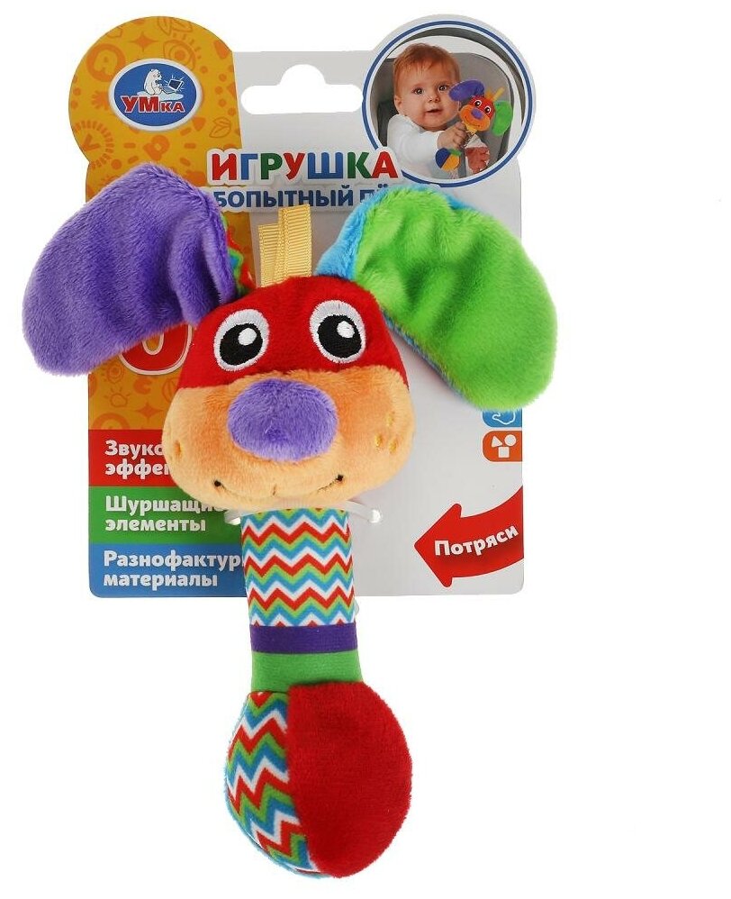 Погремушка Умка текстильная с мячиком Любопытный пёс