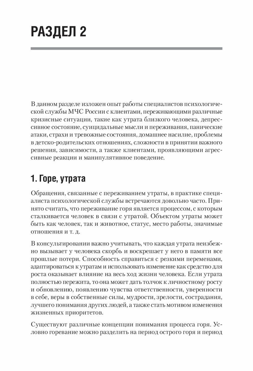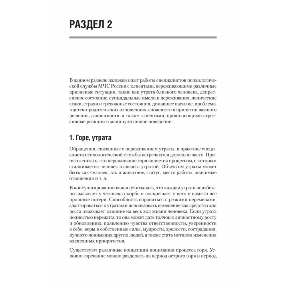 Эта книга - методичка для психологической службы МЧС, как по горячей линии, так и в интернете. На самом деле эта книга может быть использована еще шире и даже в бытовом плане. Так как в ней по этапно рассказывается о том, как экстренно оказать психологическую помощь человеку. Весь процесс оказания помощи строится на уважении, безоценочности, компетентности и ответственности. Я была действительно рада узнать, насколько грамотно работает эта служба даже с теми, кто звонит из надобности просто поговорить скорее от скуки, забавы или утешения собственных фетишей, нежели от необходимости помощи. У психологов на горячей линии есть точная методичка и нормы беседы, поэтому даже при таком разговоре у них есть точная стратегия, которая ведет к сбору информации и плавному выходу из разговора в случае ненадобности оказания помощи. Во втором, бОльшем по размеру разделе, будут описаны конкретные обращения, распространенные кризисные ситуации и теория по ним. Будут рассматриваться истории клиентов горячей линии, со своими "поинтами" в рассказе и стратегиями следующих действий. При разборе историй, автор сразу анализирует клиента на звонке, проводит анализ его состояния и рисков, от этого так же зависят следующие действия психолога. Действительно, такая работа невероятно тяжелая морально, и для того, чтобы подготовиться, насколько это возможно, такая литература просто необходима, поскольку после прочтения и, собственно, анализа авторов звонков, у вас вырабатывается опыт консультирования и личные навыки.