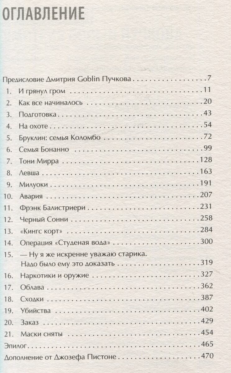 Захватывающий рассказ о жизни агента ФБР, который проникает в мафию для сбора данных. Книга читается как триллер, с яркими описаниями опасного мира организованной преступности в Соединенных Штатах в 1970-х годах.