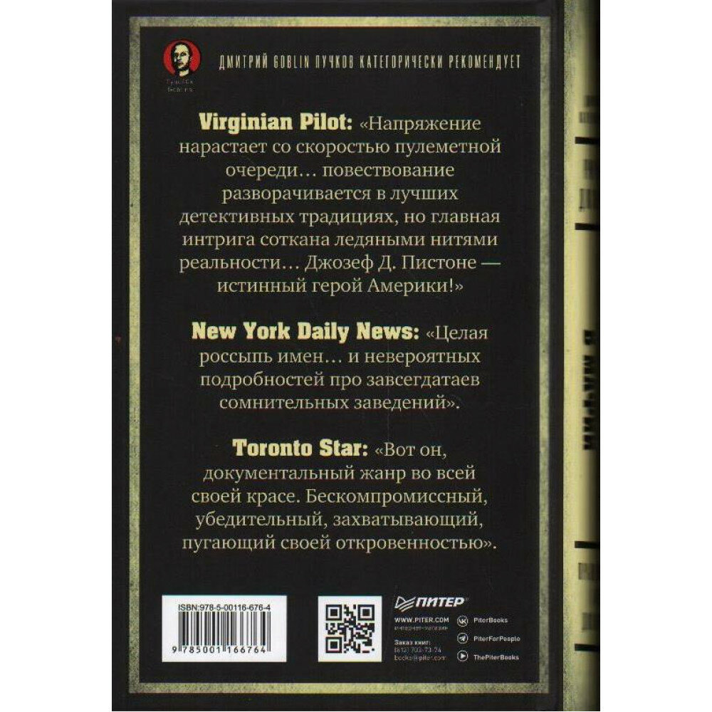 Джозеф Пистоне раскрывает все невероятные аспекты ревниво охраняемого мира, в который он проник, и рисует леденящую кровь картину того, что такое мафия, что они делает и что она означает в современной Америке.