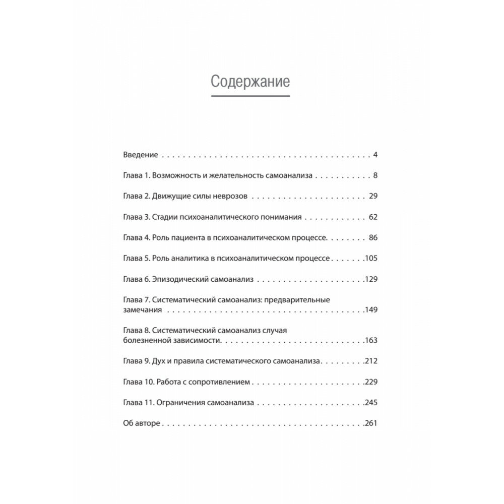 Одна из основных работ выдающегося ученого-психоаналитика Карен Хорни, яркой представительницы "неофрейдизма", бросившей вызов пессимизму и терапевтическому аскетизму великого австрийца. "Самоанализ" - своеобразная платформа теории самой Хорни - первое практическое руководство по психоанализу, помогающее людям преодолевать собственные проблемы. Во всех работах Хорни раскрывает типичные внутренние конфликты человека, а ее типология характеров - это мастерски выполненное описание людей, с которыми чуть не ежедневно сталкиваются не только психологи и психотерапевты, но и все мы. Книги Хорни, написаны легким, образным, ярким языком и понятны даже неспециалистам. Невероятно популярные в свое время, они и сегодня не утратили своей актуальности.