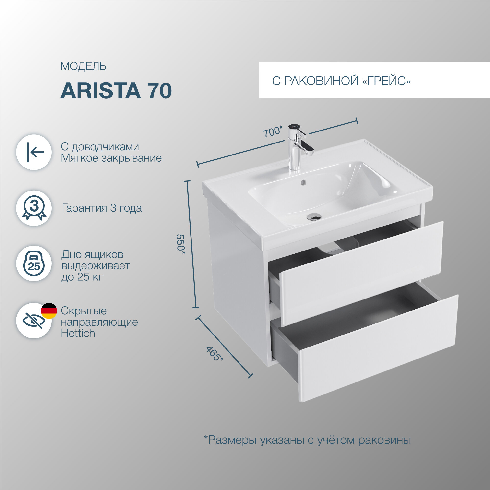 | Обратите внимание | Подходит раковина Гармония 80 |