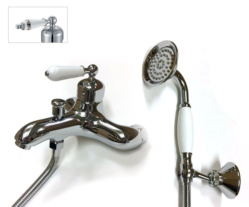 Смеситель для ванны. Цвет-хром, белый. Механизм: керамический картридж. Излив: фиксированный. Стандарт подводки: G 1/2. Расход воды: 6 л/мин. Аэратор. Длина душевого шланга: 1500 мм. Количество режимов струи ручного душа: 1. В комплекте поставки: смеситель для ванны, ручной душ, держатель ручного душа, душевой шланг, комплект креплений