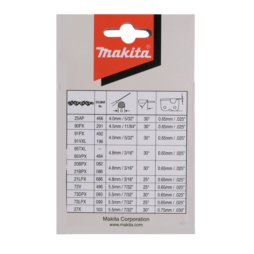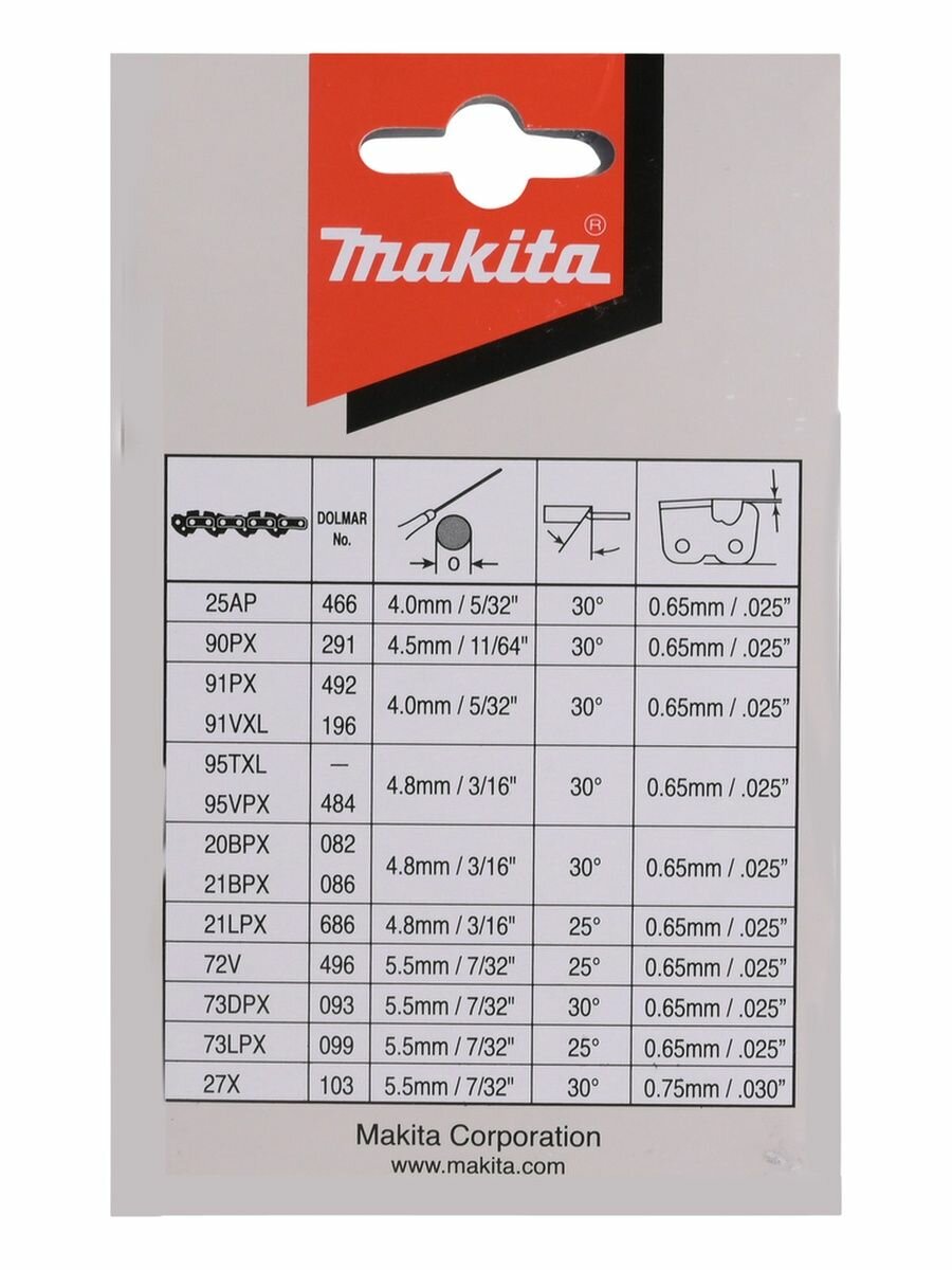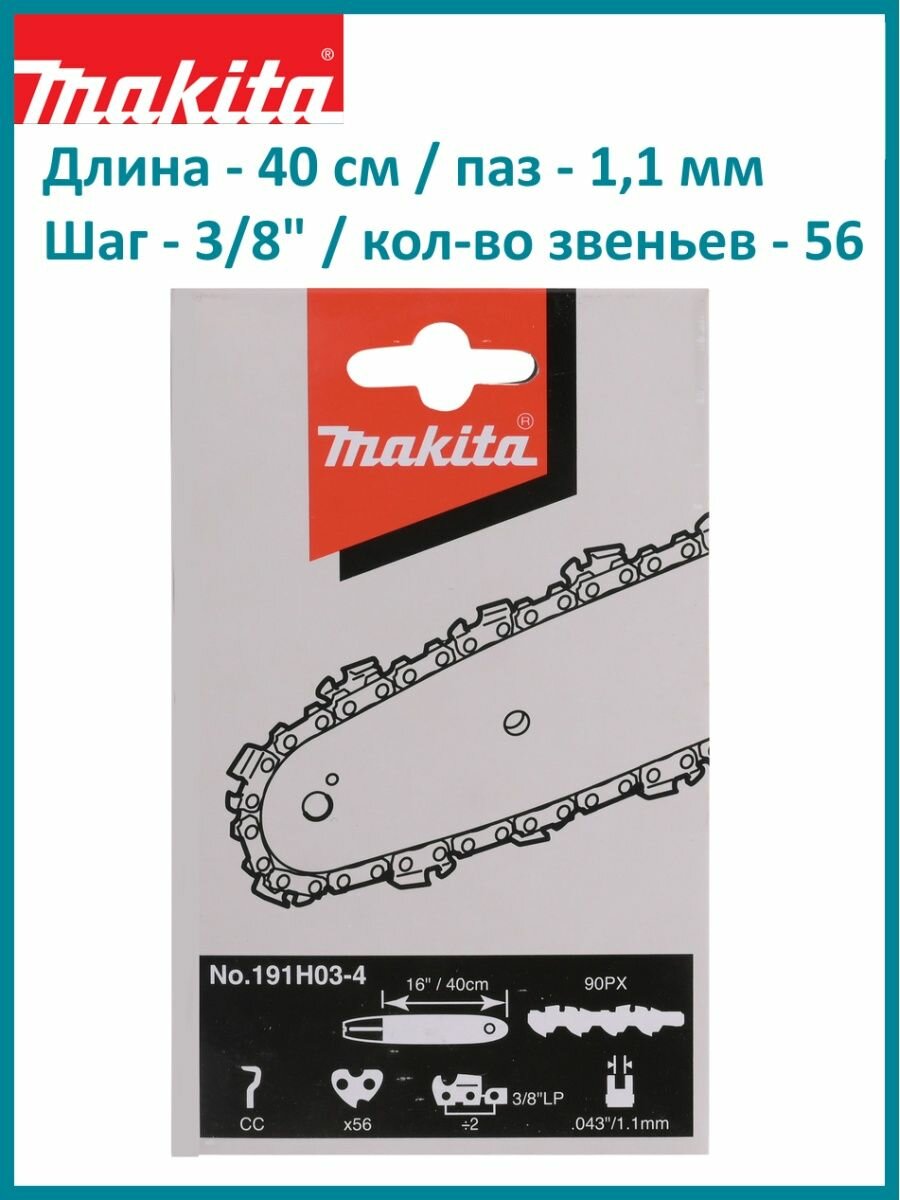 Цепь Makita 90PX 3/8"LP 1.1мм 56зв подходит для работы с цепными пилами UC4020A, UC4041A, DUC406, DUC407.