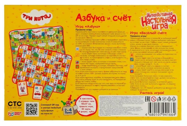 Интерактивная настольная игра - ходилка «Три кота Азбука и счёт» - отличный вариант для обучения и веселья.