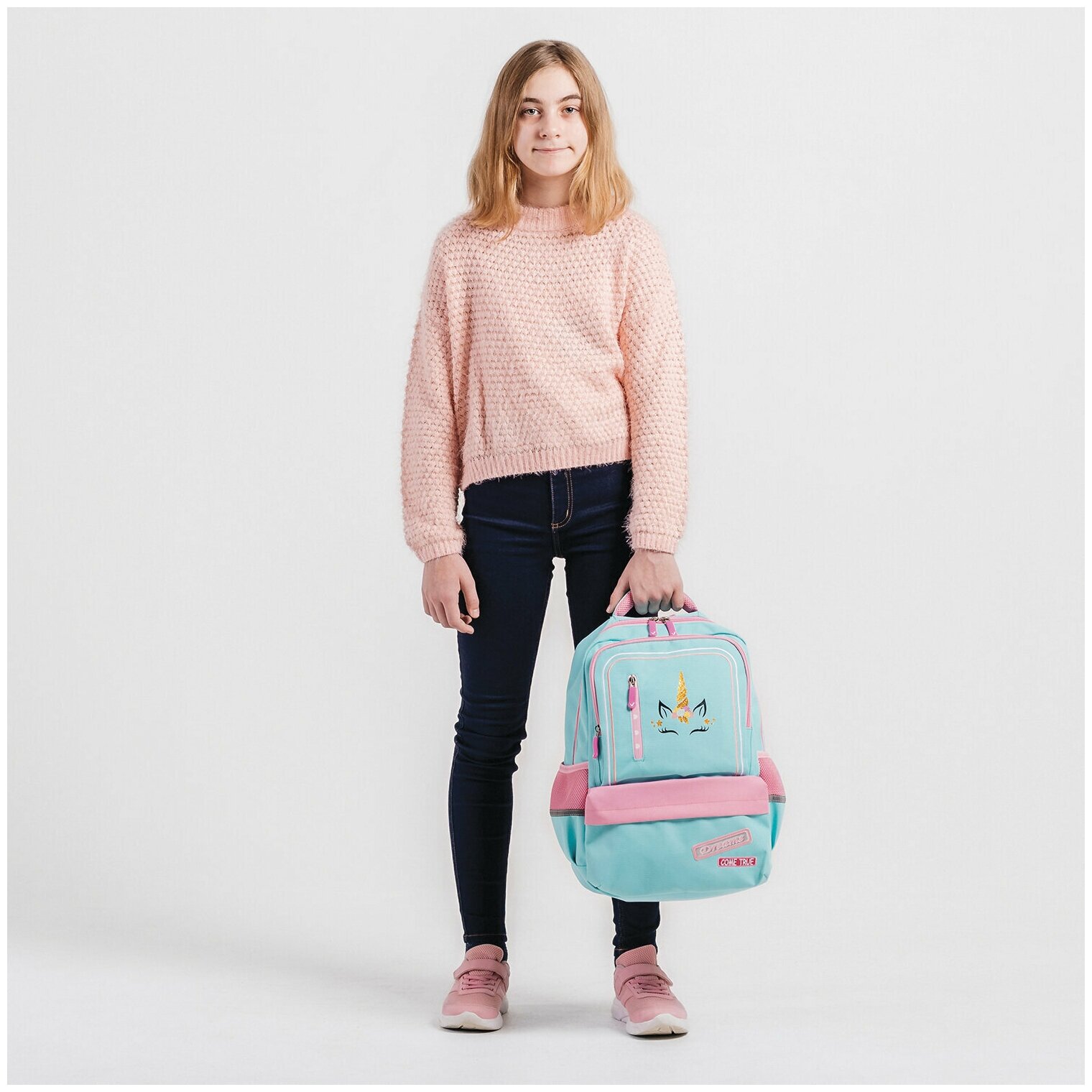 Рисунки и узоры: Рюкзак украшен яркими рисунками и узорами, которые понравятся любой девочке. Они придают товару индивидуальность и стильный вид.