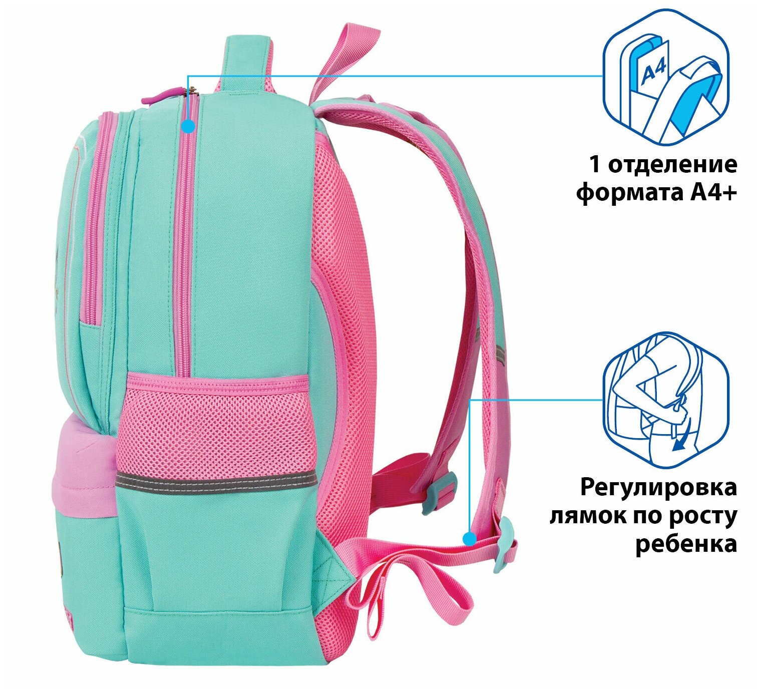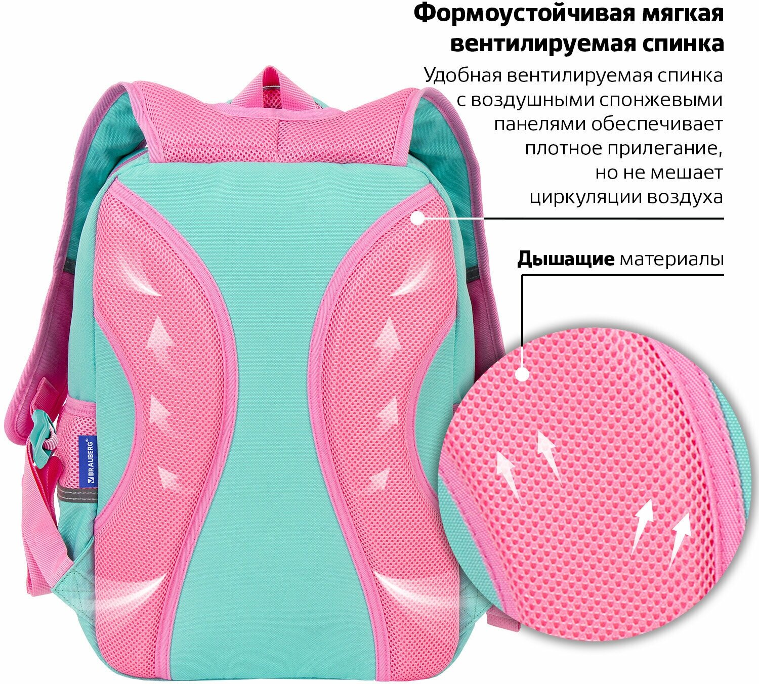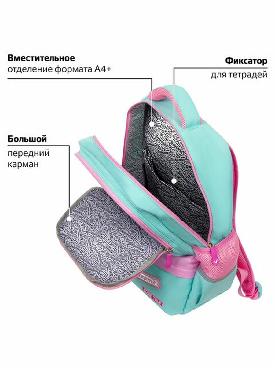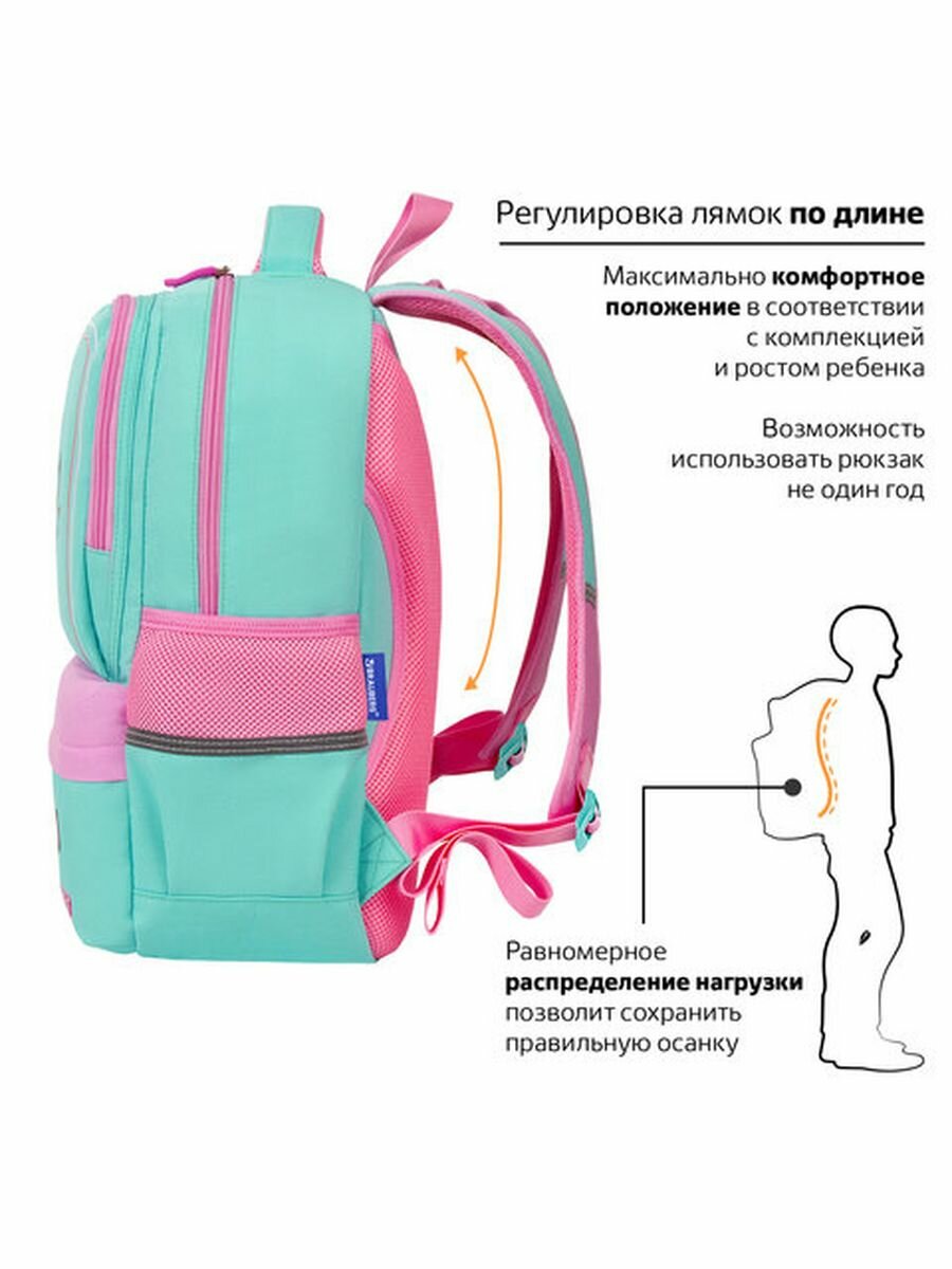 Эргономичная спинка: Рюкзак оснащен эргономичной спинкой, которая помогает предотвратить перегрузку спины ученика и обеспечивает оптимальную поддержку.