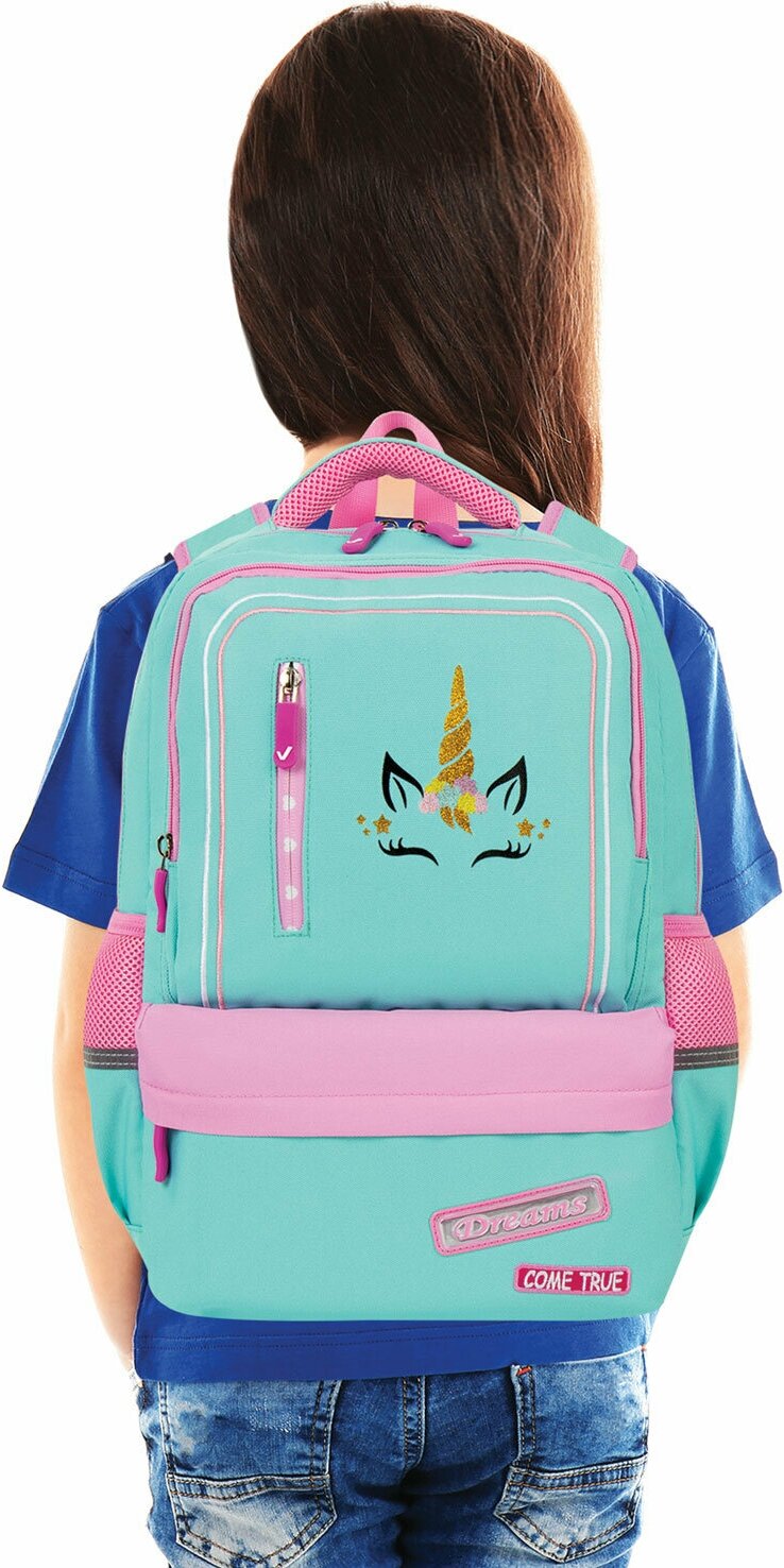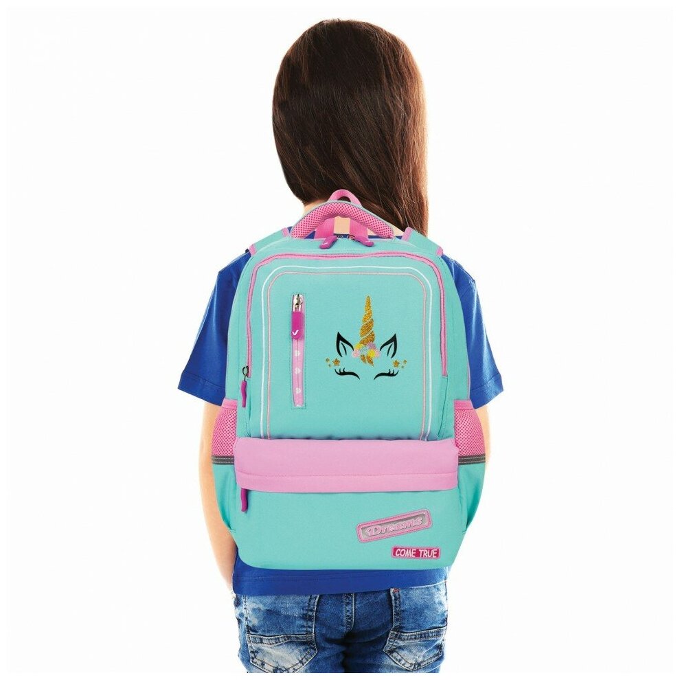 Размер Длина в 40 сантиметров. Модель рюкзака - Star, Unicorn (229977). У него полужесткий каркас и молния в виде застежки. Ширина составляет 13 сантиметров, а высота 29 сантиметров. Рюкзак предназначен для девочек и является школьным.