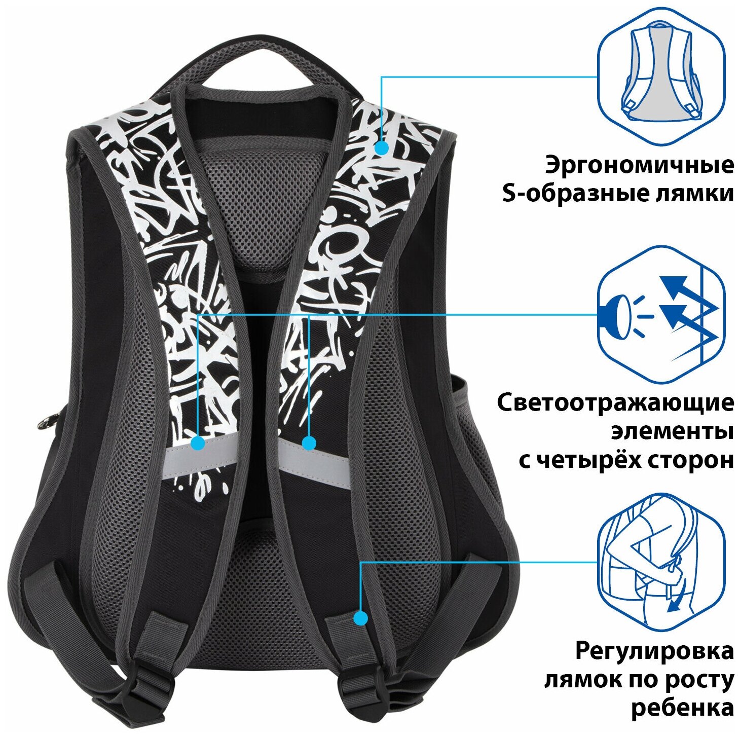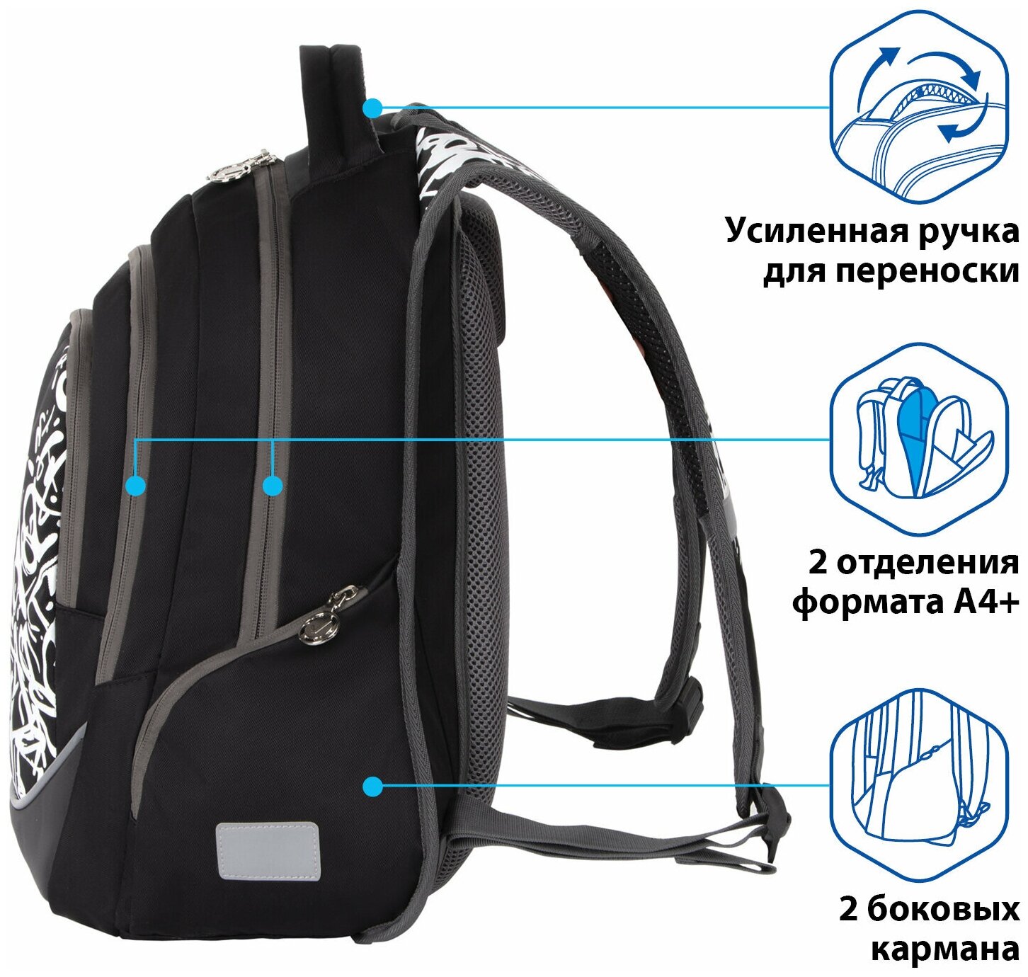 Рюкзак Brauberg SPECIAL Graffiti анатомическая вентилируемая формоустойчивая спинка 2 отделения черный (229983) Рюкзак Special Graffiti 44х30х13 см