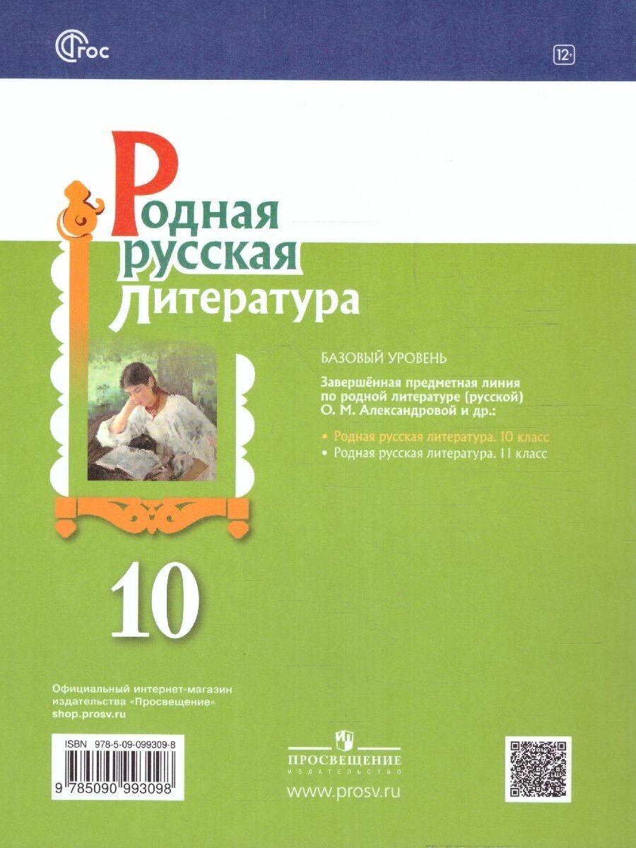 Родная русская литература. 10 класс. Учебное пособие. Базовый уровень (Александрова Ольга Макаровна, Аристова Мария Александровна, Беляева Наталья Васильевна, Добротина Ирина Нургаиновна, Критарова Жанна Николаевна); Просвещение, 2023