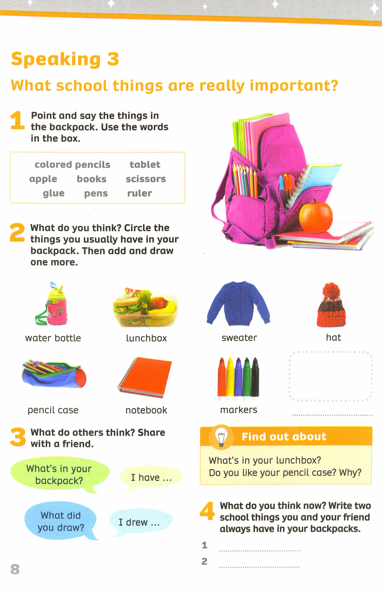 Now I Know! page provides tasks to consolidate information gathered on the Big Question as well review language objectives.