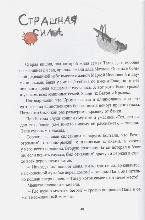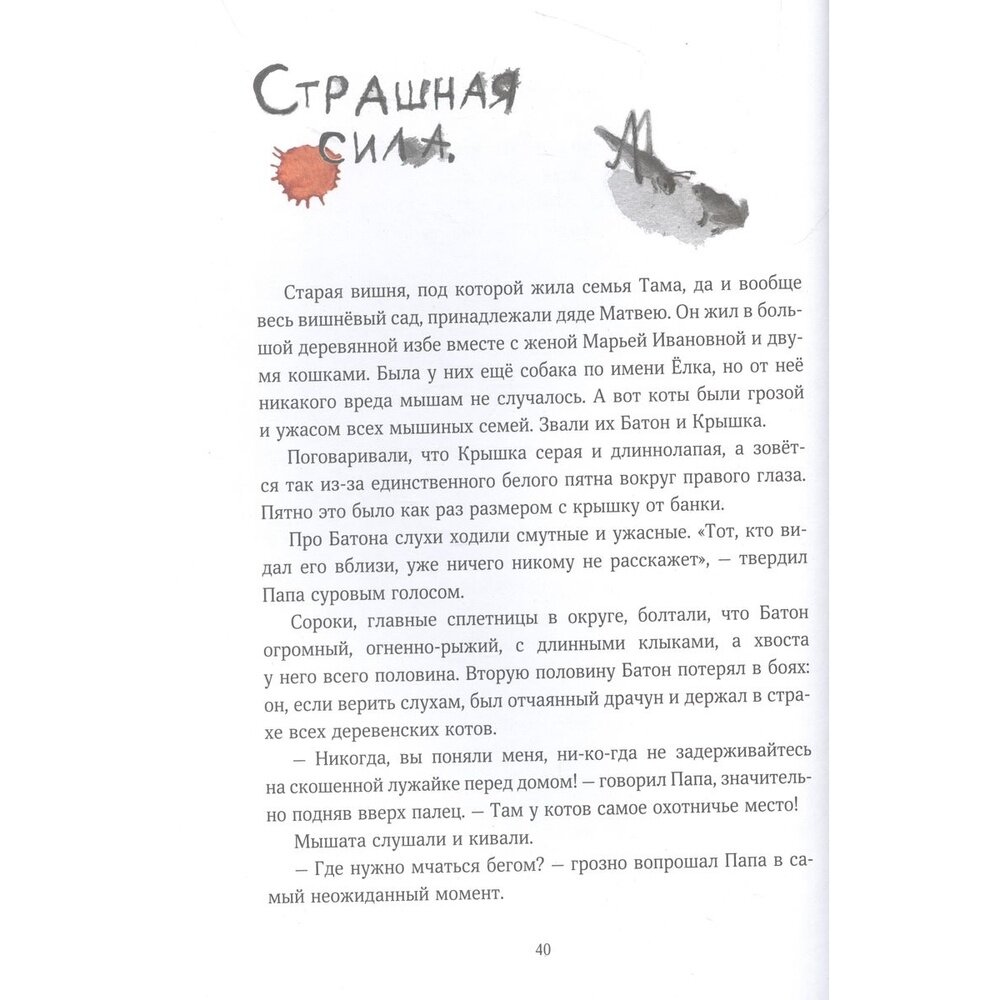 Конечно, мне не пять лет, но очень интересно было читать, радоваться победам мышонка и переживать за него. История написана лёгким языком, свободным, современным, хотя мне не всё было понятно по ходу действия: «кибитка удалая, «бразды пушистые взрывая, лететь не будет».