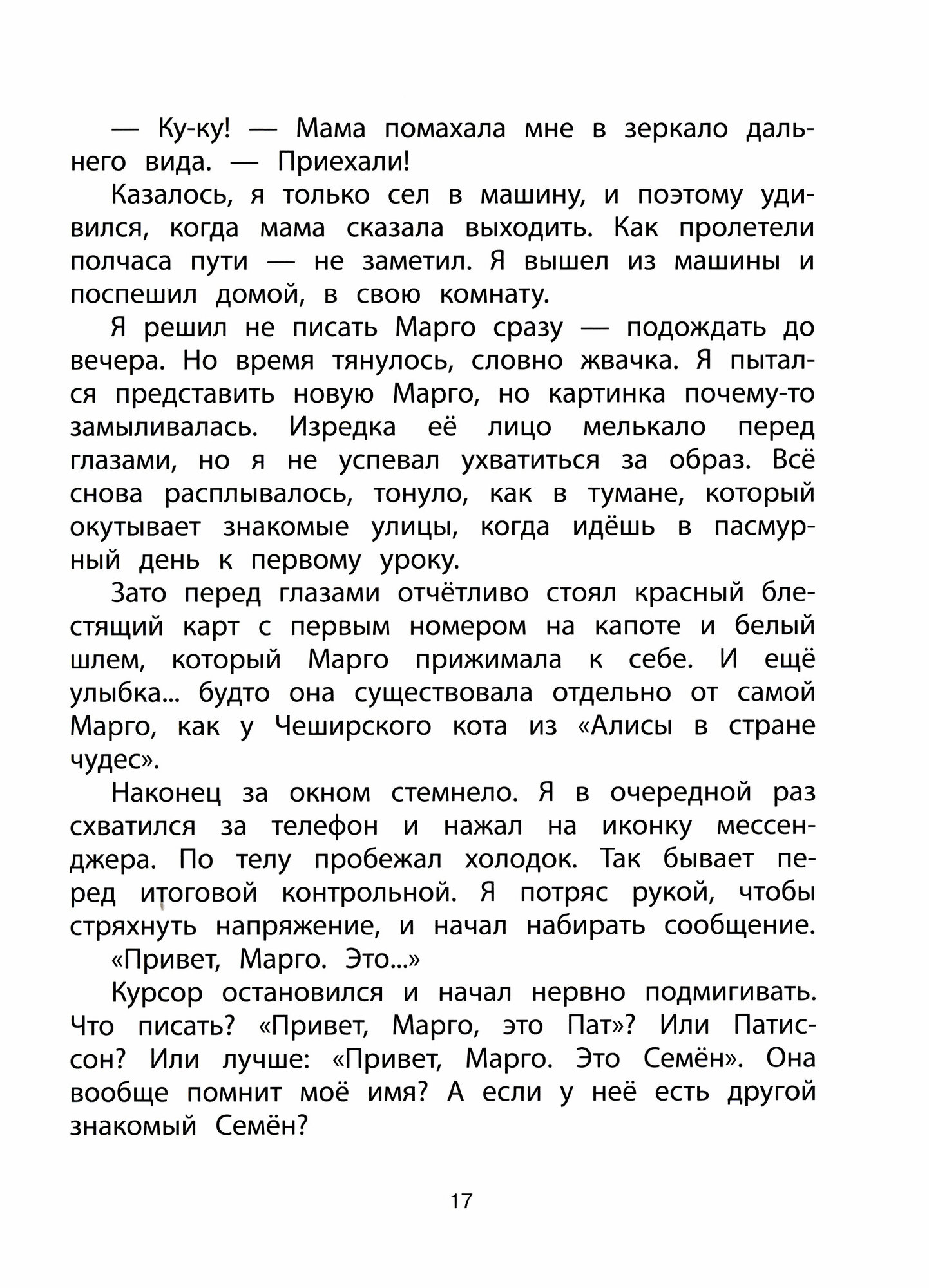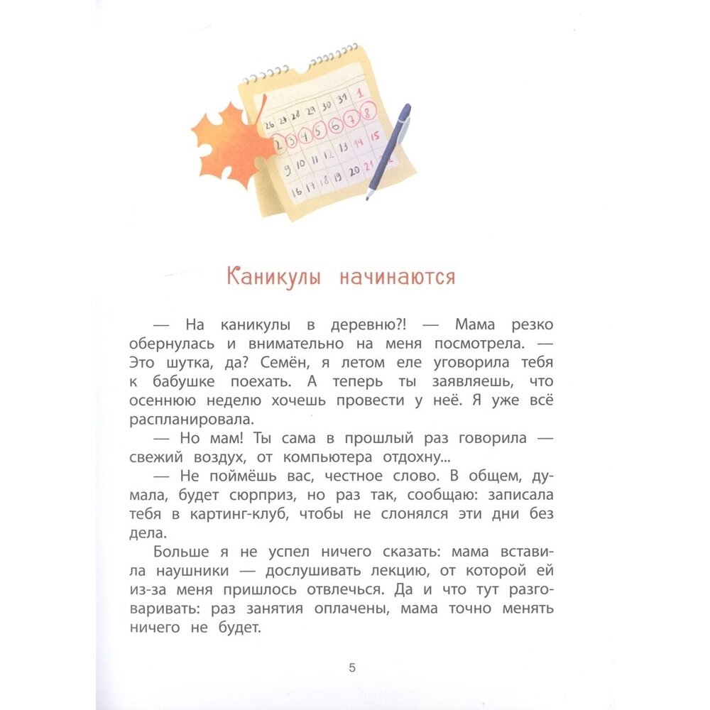 Семён в отчаянии: почему он не спросил у Марго номер телефона? И в соцсетях он не может её разыскать. Вот уже и осенние каникулы наступили, а Марго никак не выходит у него из головы. Он даже хотел упросить маму отправить его на неделю к бабушке, но она записала его на картинг. На тренировке как назло к Семёну прицепился какой-то лихой гонщик. За что ему всё это? Неужели каникулы окончательно испорчены?.. Впрочем, всё только начинается!