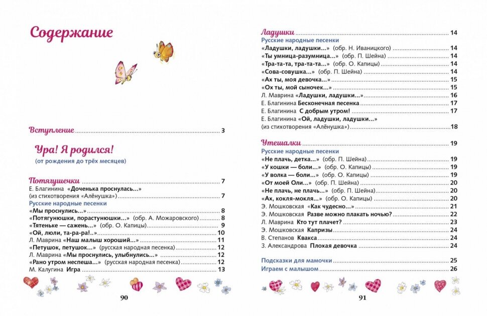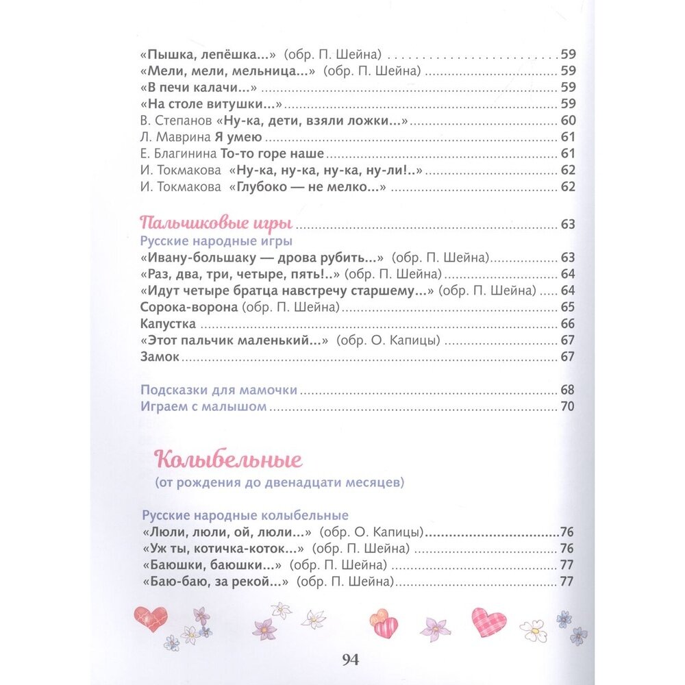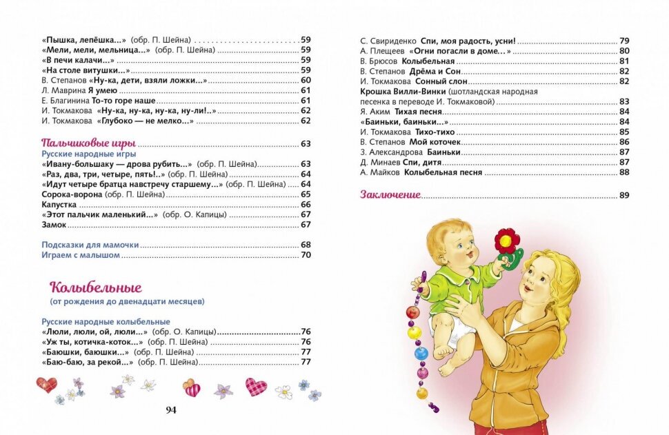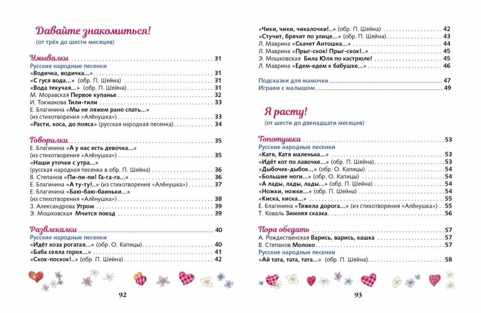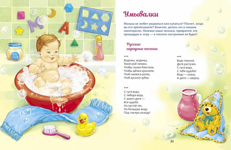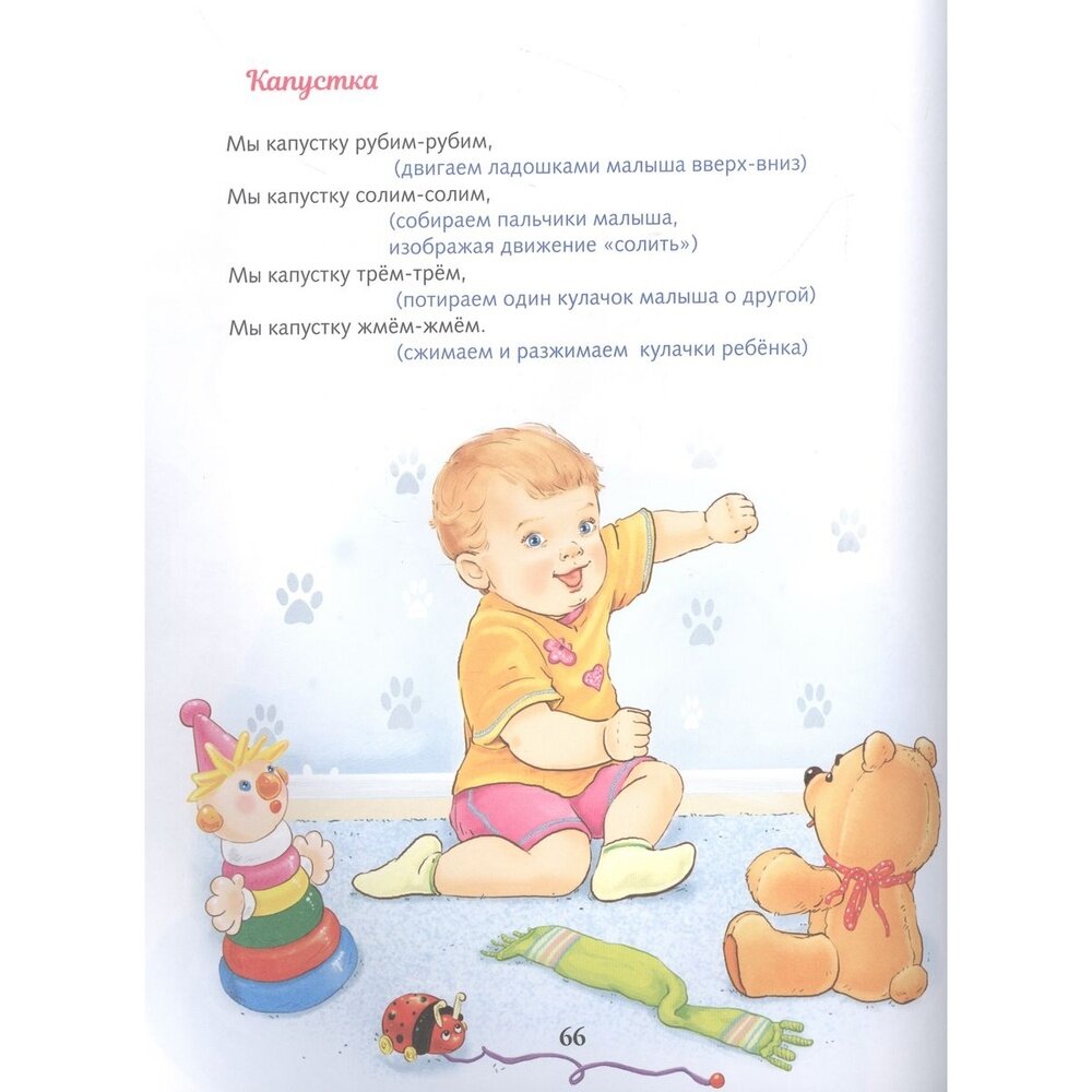 Наша книга станет для вас настоящим подарком. В ней собраны прибаутки, песенки и потешки, которые помогут вам сделать весёлыми и полезными ежедневные процедуры, необходимые в жизни каждого малыша. Кроме того, в книге есть раздел "Подсказки для мамочки", в котором вы узнаете, какие упражнения нужно выполнять младенцу, как с ним общаться, чтобы ваш малыш вырос умным и здоровым.