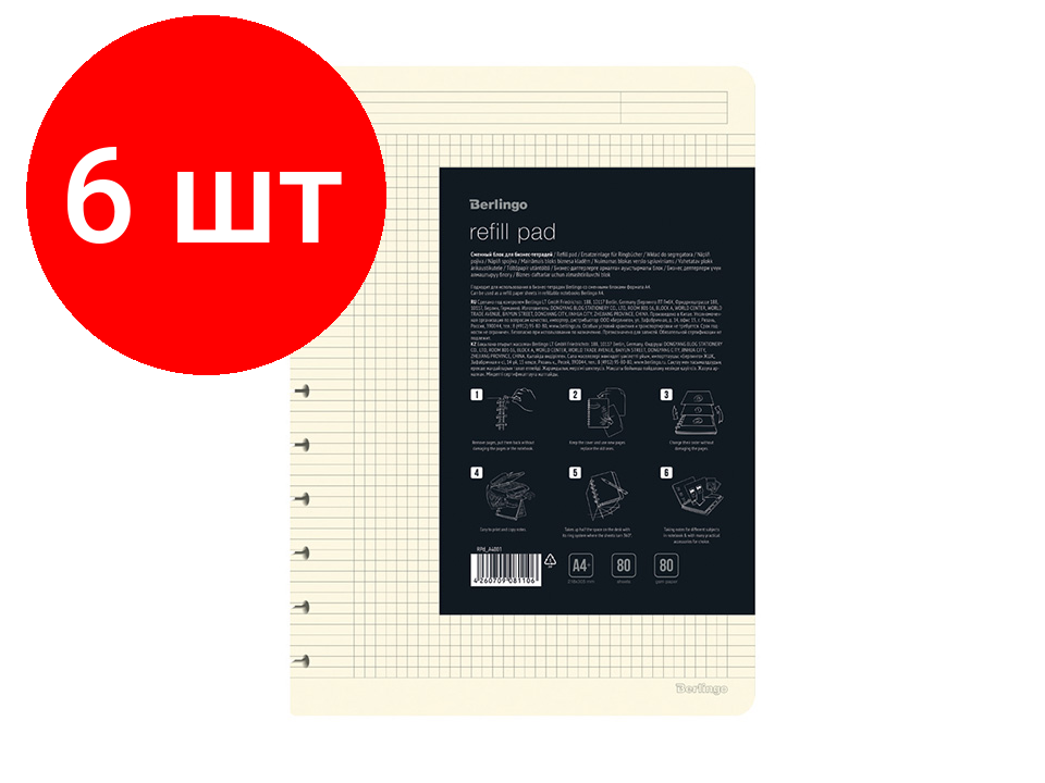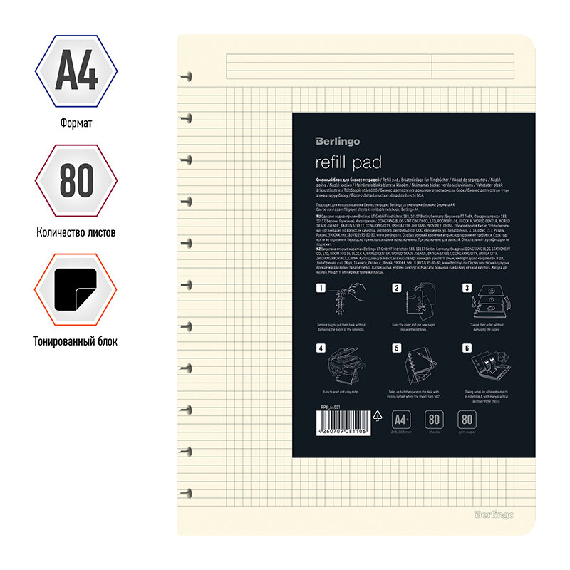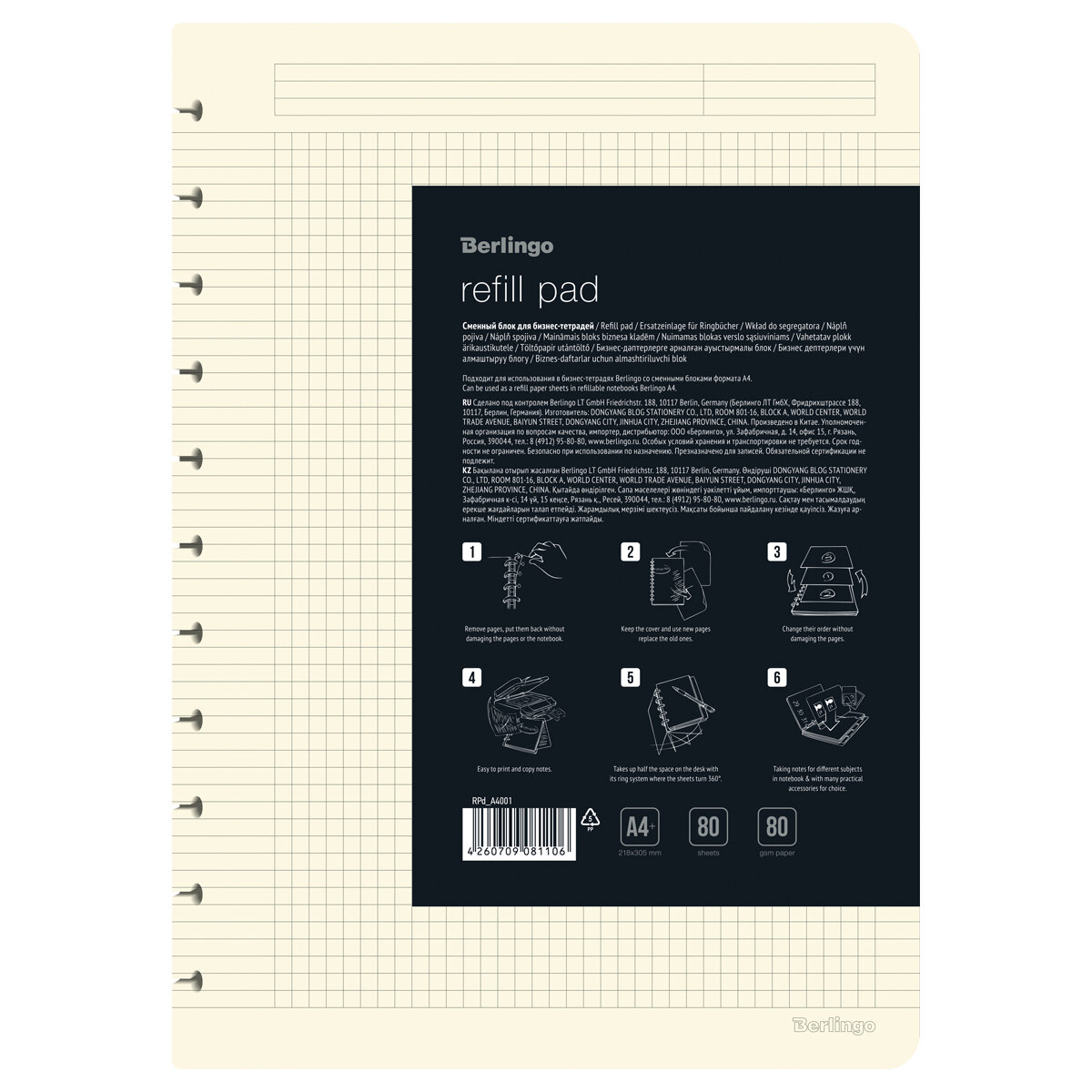 Сменный блок для бизнес-тетрадей А4 80 листов клетка Berlingo