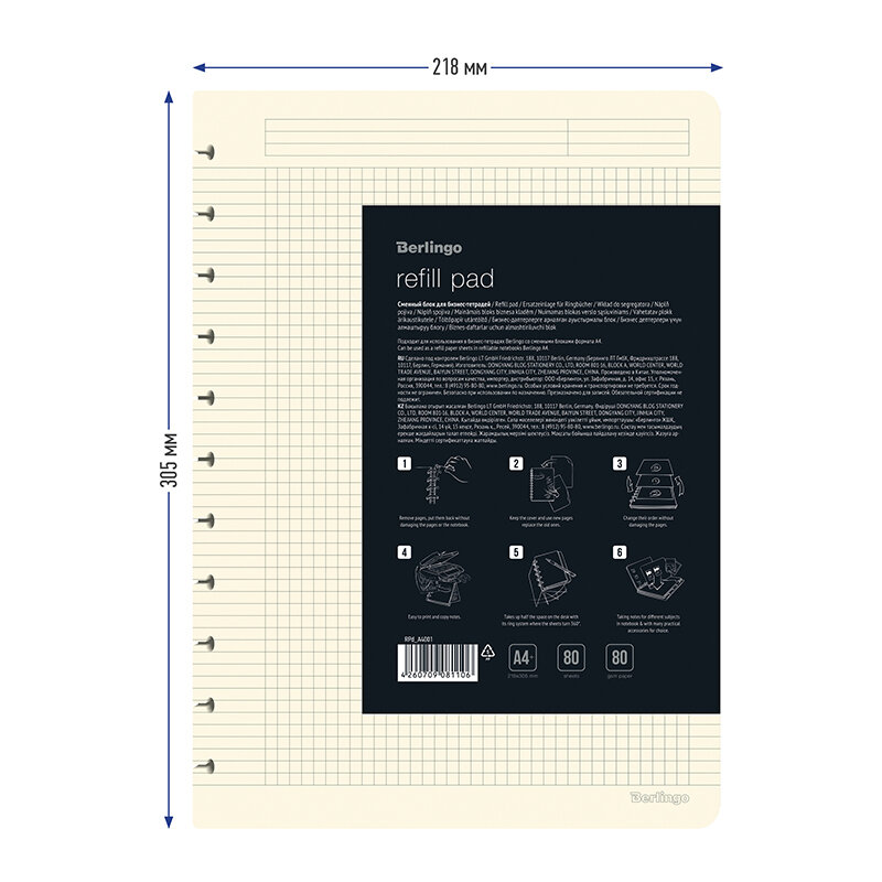 Блок сменный Berlingo для бизнес-тетрадей на кольцах подходит для замены листов в тетрадях формата А4+. В упаковке представлено 80 листов тонированной бумаги премиального качества.