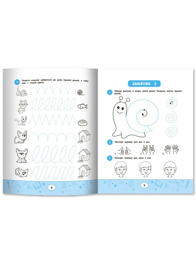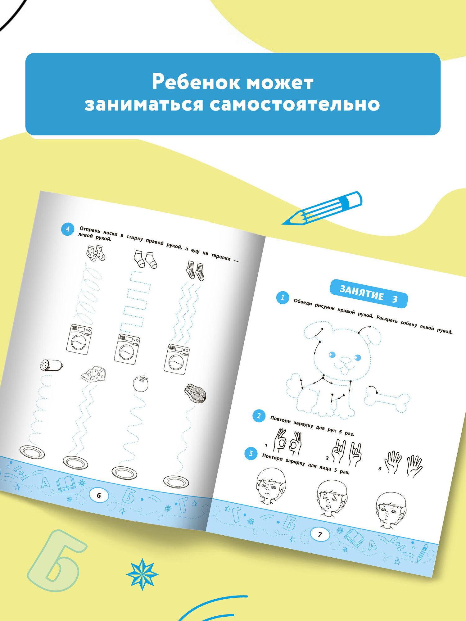 Сборник включает поочерёдное и одновременное рисование двумя руками, пальчиковую гимнастику, упражнения на развитие межполушарных связей, миогимнастику, упражнения с элементами ЛФК, упражнения на стабилизацию эмоций и настроения, повышение общего энергетического тонуса организма.