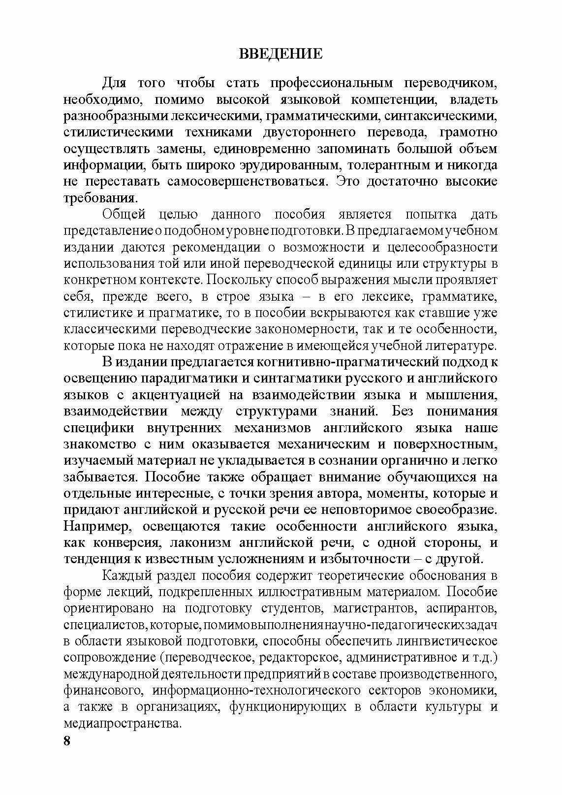 Учебник предназначен для формирования и совершенствования общекультурных и профессиональных компетенций студентов-бакалавров, обучающихся по направлению 45.03.02 "Лингвистика" (на занятиях по дисциплинам "Теория перевода", "Специализированный перевод" и др.). Учебное издание также ориентировано на магистрантов, аспирантов, преподавателей, специалистов в области лингвистики, семантики, грамматики и всех, интересующихся проблемами исследования и перевода языка.