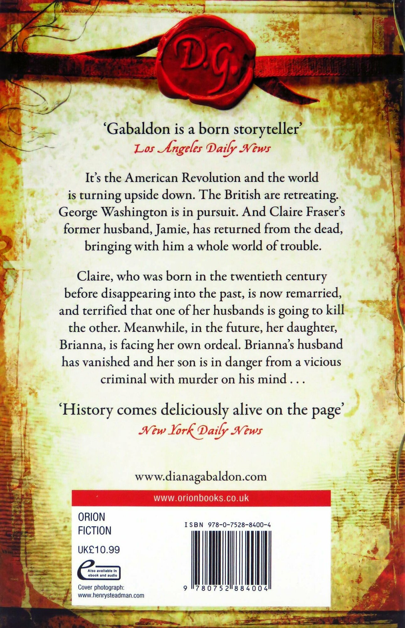 Her former husband, Jamie, has returned from the dead, demanding to know why in his absence she married his best friend, Lord John Grey. Lord John's son, the ninth Earl of Ellesmere, is no less shocked to discover that his real father is actually the newly resurrected Jamie Fraser, and Jamie's nephew Ian Murray discovers that his new-found cousin has an eye for the woman who has just agreed to marry him.