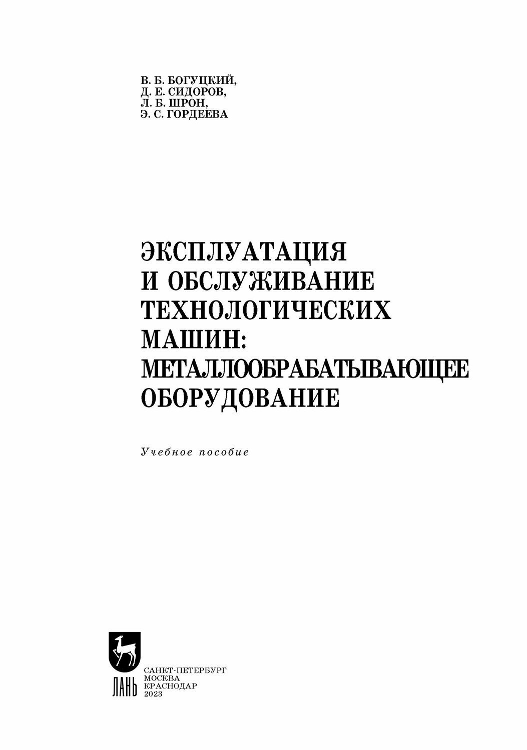Эксплуатация и обслуживание технологических машин. Металлообрабатывающее оборудование. Для СПО (Богуцкий Владимир Борисович, Шрон Леонид Борисович, Сидоров Денис Евгеньевич); Лань, 2023