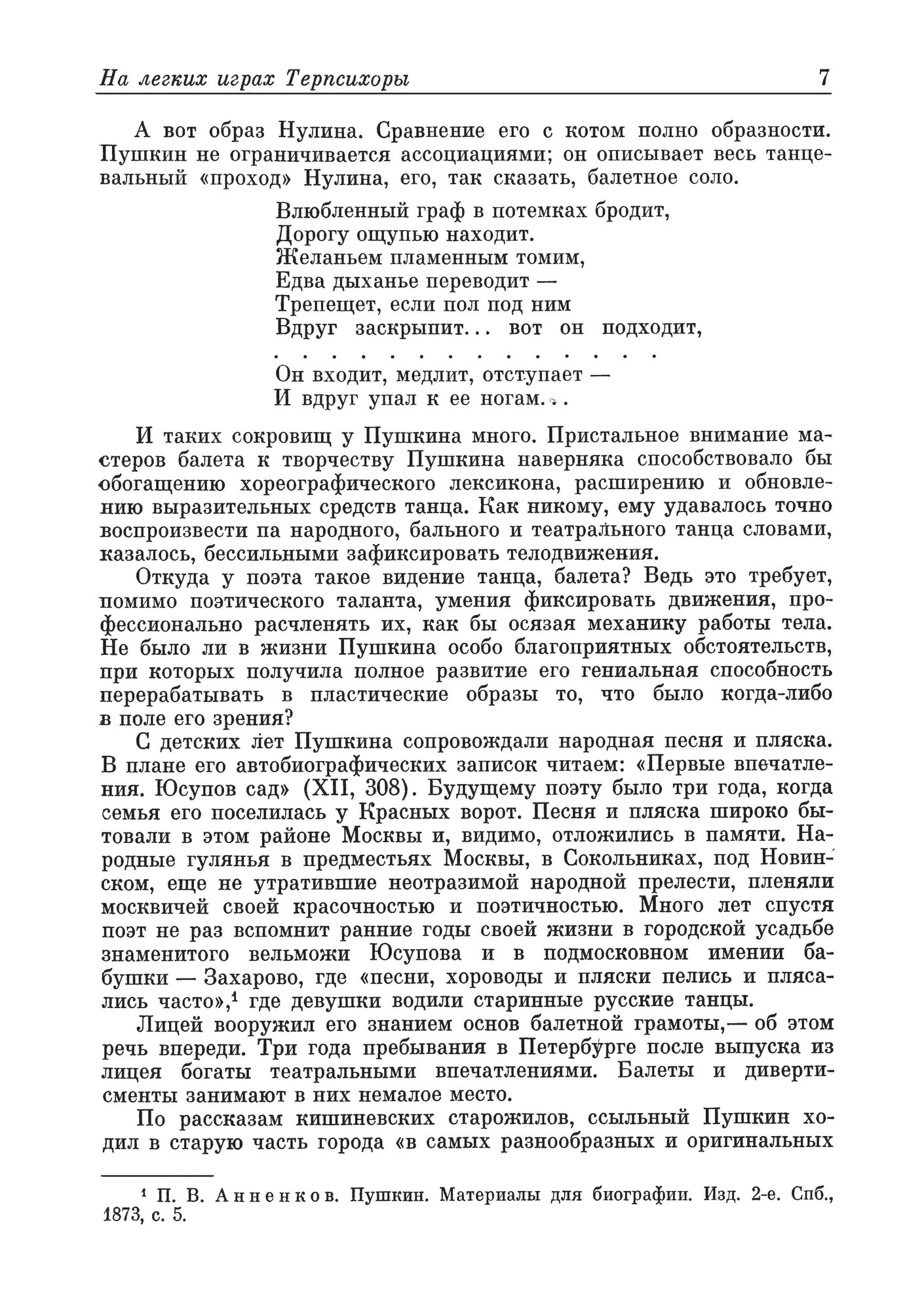 В книге историка балета Ю. Слонимского открываются новые страницы жизни русского и зарубежного балетного театра, оживает знакомый и вместе с тем неожиданный для нас Пушкин. Вникая глубоко в поэтическую ткань произведений Пушкина, автор воссоздает историческое содержание его, казалось бы, частных и случайных реплик в балете, сохраняющих поныне свое значение. Автор обстоятельно рассматривает набросок плана повести "Две танцовщицы", устанавливает прототипы героинь.