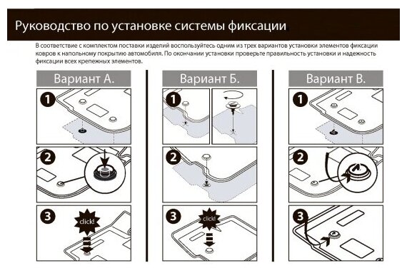 Комплектация крепежа:Фиксаторы к коврикам: передний левый - 2Прочные и долговечные ковры в салон автомобиля, изготовлены из высококачественного и экологичного сырья, полностью повторяют геометрию салона вашего автомобиля.Основными преимуществами продукта являются:- Надежная система крепления, позволяющая закрепить коврик на штатные элементы фиксации, в результате чего отсутствует эффект скольжения по салону автомобиля.- Высокая стойкость поверхности к стиранию.- Специализированный рисунок и высокий борт, препятствующие распространению грязи и жидкости по поверхности ковра.- Высота борта варьируется от 17 до 27 мм по периметру ковриков.- Перемычка задних ковров в комплекте предотвращает загрязнение тоннеля карданного вала.- Произведены из первичных материалов, в результате чего отсутствует неприятный запах в салоне автомобиля.- Высокая эластичность, можно беспрепятственно эксплуатировать при температуре от -50 до +60 градусов по Цельсию.Уважаемые клиенты! Обращаем ваше внимание, что коврики имеет форму соответствующую модели данного автомобиля. Фото служит для визуального восприятия товара.