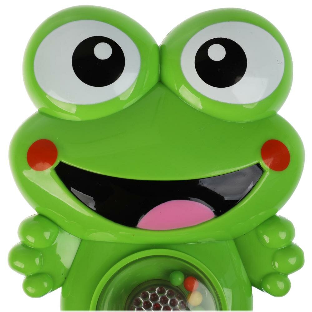 Эта игрушка в виде забавной лягушки со световыми эффектами легко привлечёт внимание ребёнка. Гремящие шарики, подвижные колечки, мелодии и звуки развлекут и успокоят малыша.