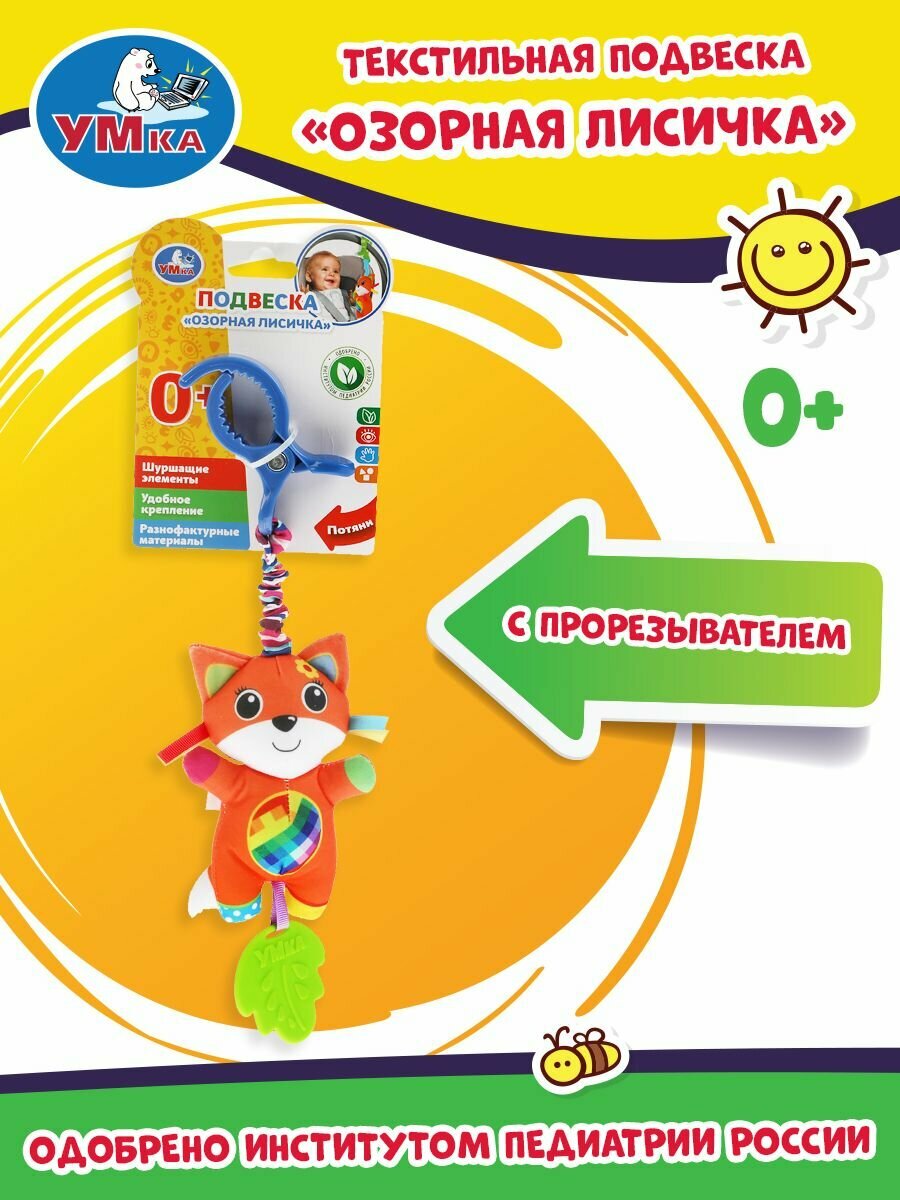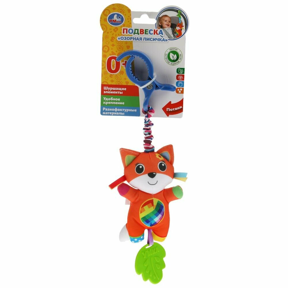 Эта игрушка в виде милой лисички, выполненная в ярких цветах из очень мягкого и гипоаллергенного материала, непременно приведёт ребёнка в восторг. Если её потрясти - весело загремят шарики, надежно спрятанные внутри. Благодаря креплению-клипсе игрушку удобно крепить к кроватке, коляске или дуге. Прорезыватель интересной формы из качественного безопасного материала пригодится малышу, когда у него будут резаться зубки.