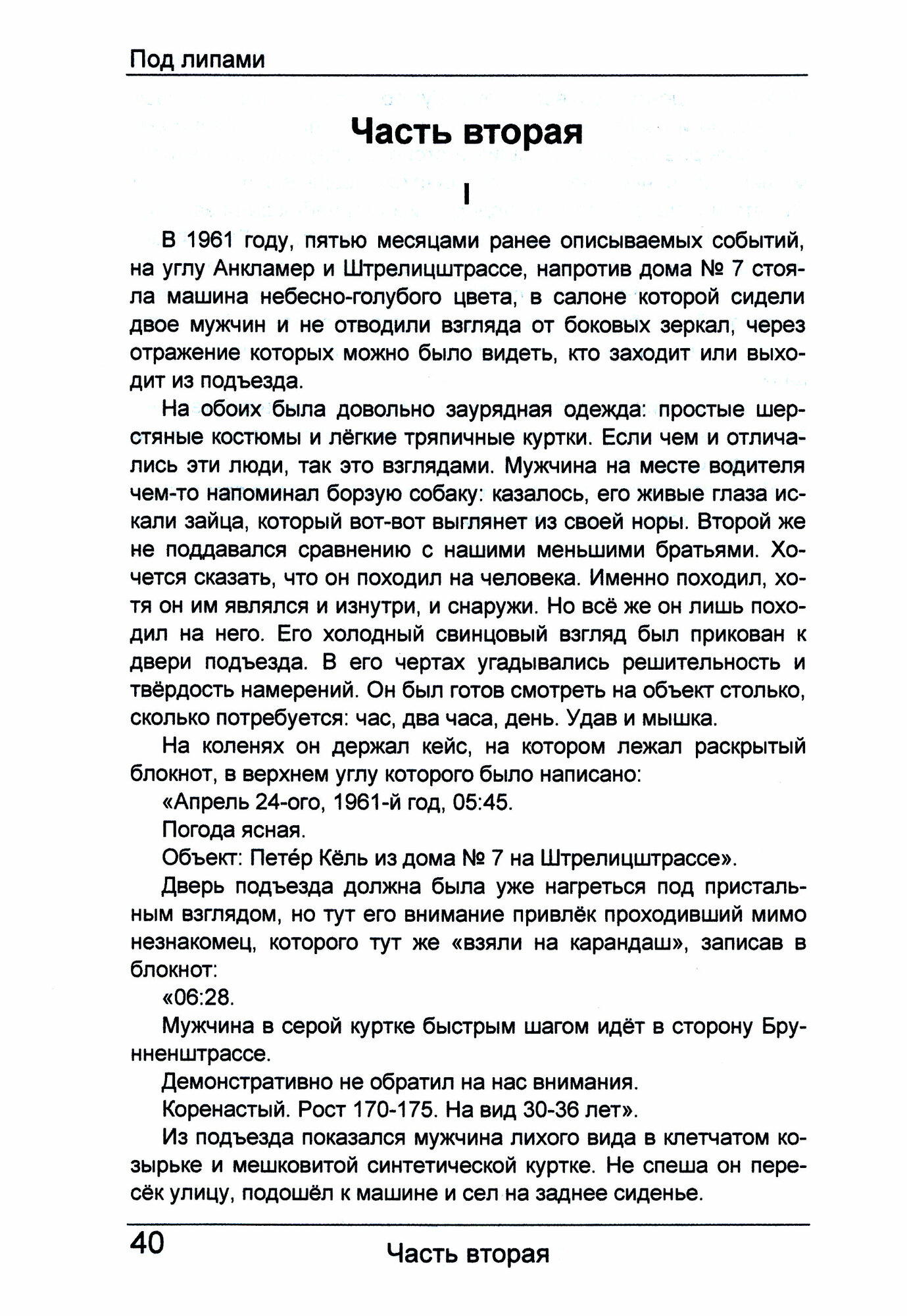 "Под липами" - это история о судьбах людей, ставших свидетелями и жертвами своего времени. История о двух любящих друг друга подростках, чья жизнь была украдена. У них отняли уготованную им судьбу: их отношения были разделены Берлинской стеной, подобно вмешательству неумелого хирурга в хрупкий сосуд.
