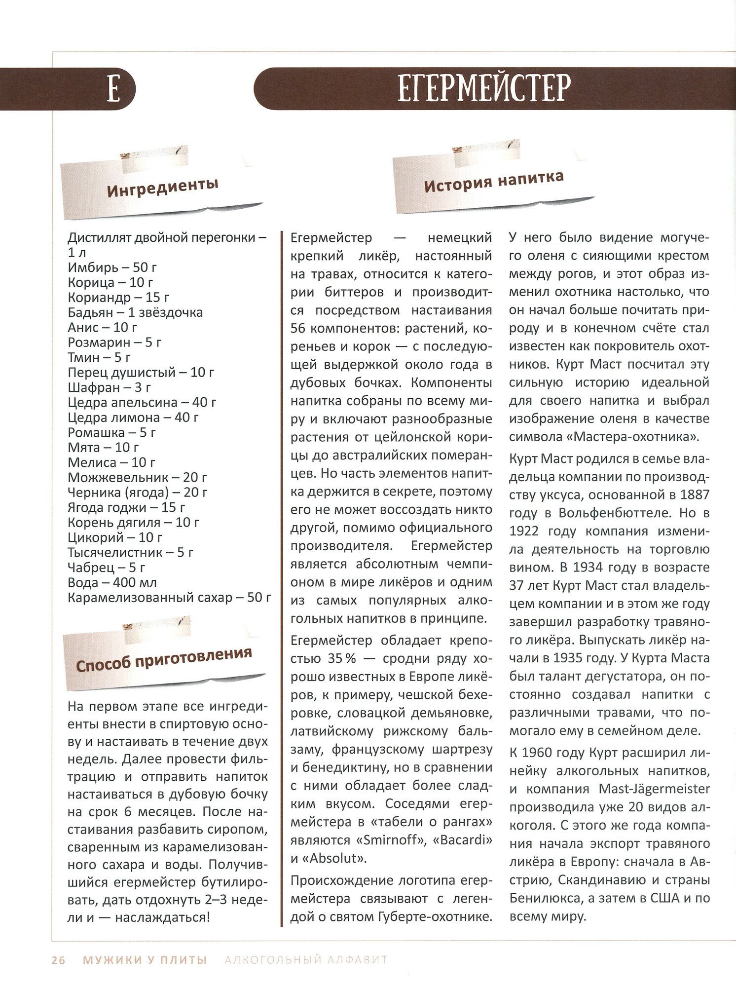 Для каждого напитка предусмотрен специальный раздел, где не только изложена история его создания, но и предложены варианты правильного употребления, включая подбор гастрономической закуски, которая оттенит и позволит более глубоко раскрыть вкус алкогольного продукта.