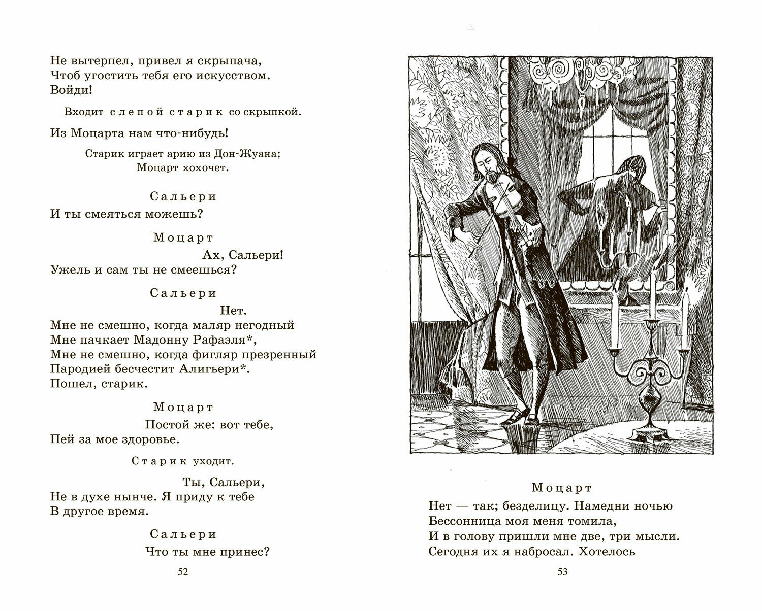 В книге представлены четыре пьесы — «Скупой рыцарь», «Моцарт и Сальери», «Каменный гость», «Пир во время чумы», или условный драматический цикл «Маленькие трагедии». Сюжеты их не связаны между собой только внешне. Перед нами разворачивается яркая картина страстей человеческих — скупость, зависть, коварство, любовь, ревность, насилие... И эпидемия Чумы — как возмездие, как расплата за грехи.