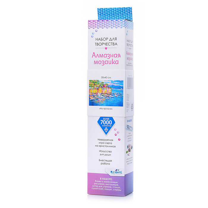 | Комплектация | канва с нанесенным рисунком; инструкция; лоток для страз; стилус; сухой клей; пинцет; стразы |