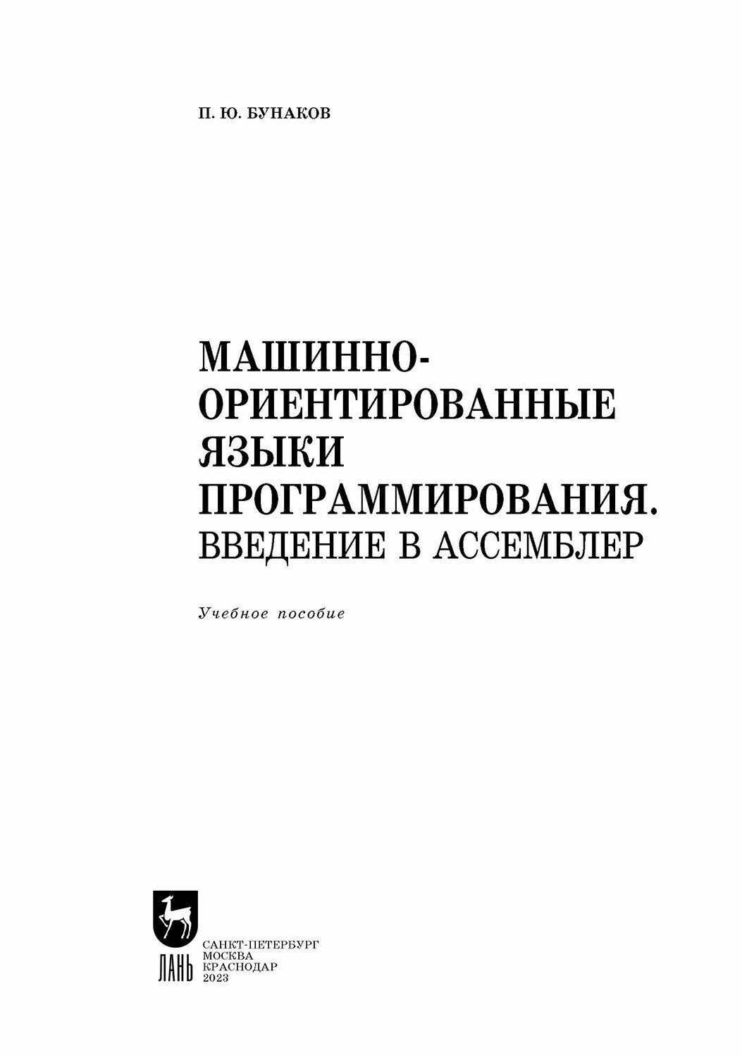 Машинно-ориентированные языки программирования. Введение в ассемблер. Учебное пособие для вузов (Коллектив авторов); Издательство ЛАНЬ, 2023