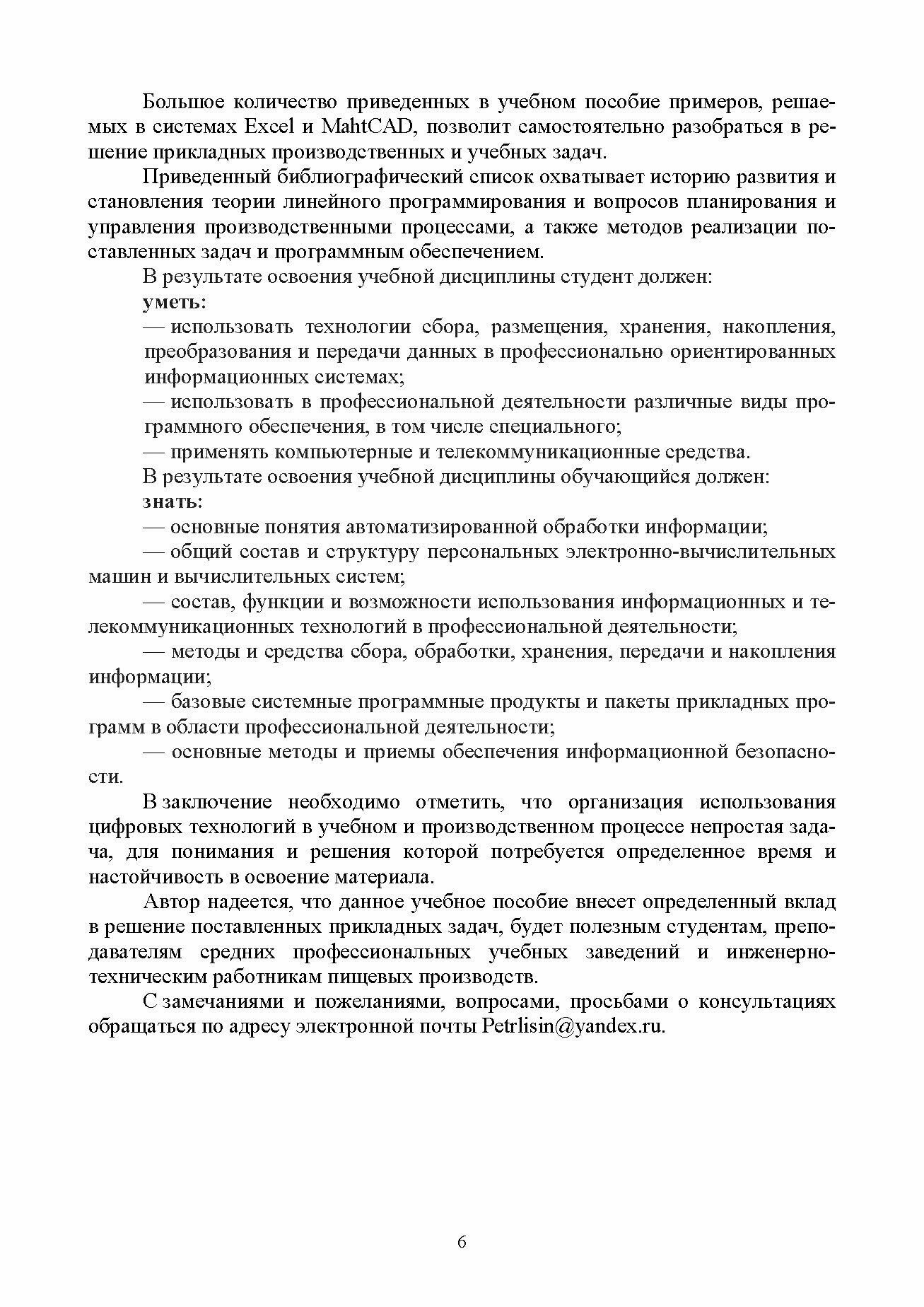 В учебном пособии рассмотрены классические задачи линейного программирования, системы массового обслуживания, статистического анализа качества продуктов питания и методологии оценки сбалансированности продуктов питания. Теоретическая часть пособия дополняется детально разобранными практическими примерами. Приводятся примеры решения прикладных задач с использованием цифровых систем — Excel, MathCAD.