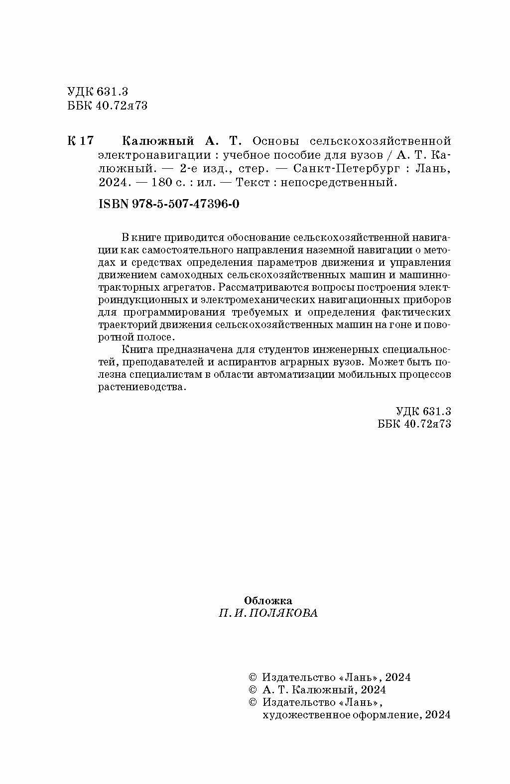 Основы сельскохозяйственной электронавигации. Учебное пособие для вузов (Калюжный Анатолий Тимофеевич); Лань, 2023