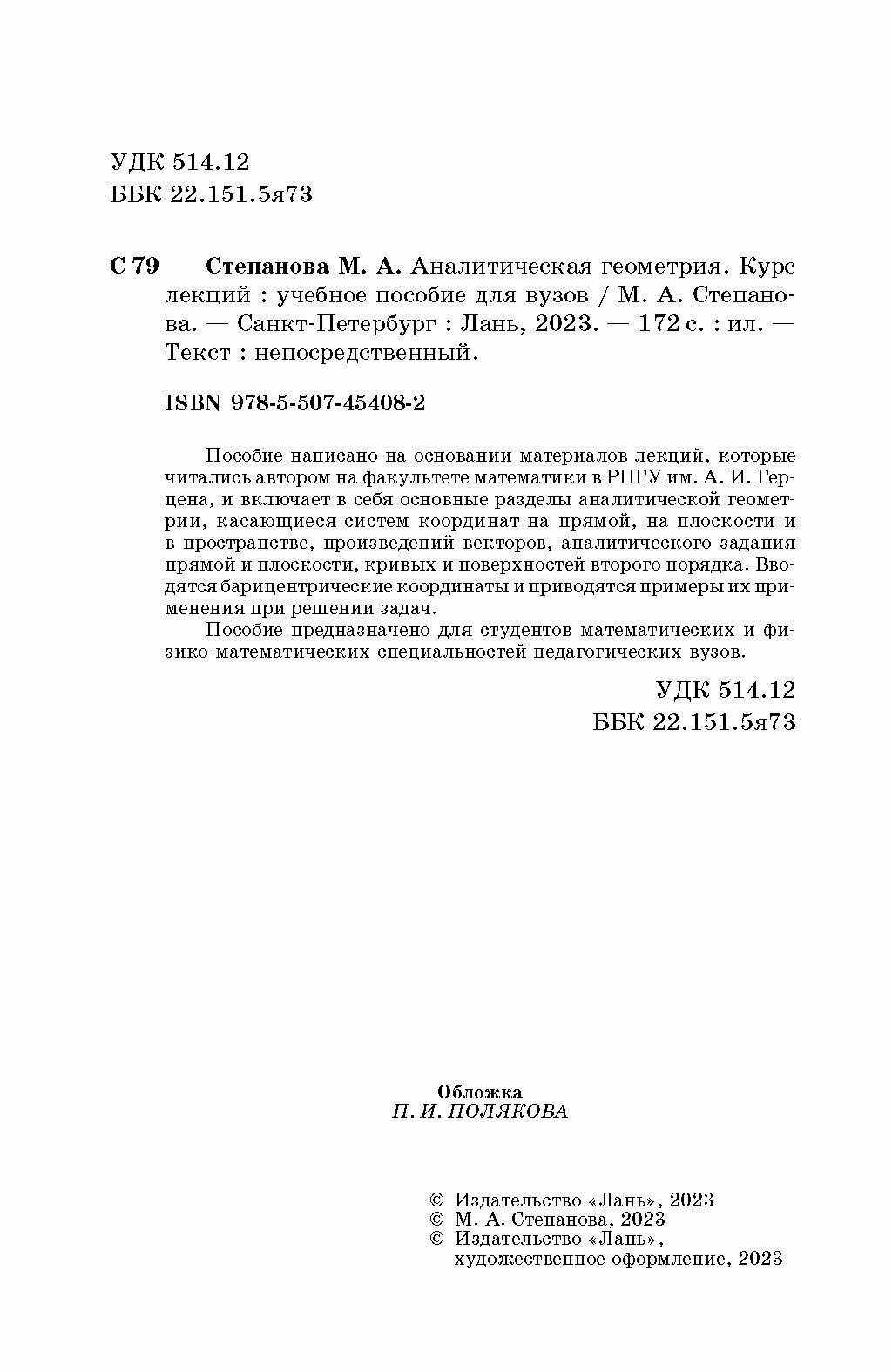 Аналитическая геометрия. Курс лекций. Учебное пособие для вузов (Коллектив авторов); Издательство ЛАНЬ, 2023