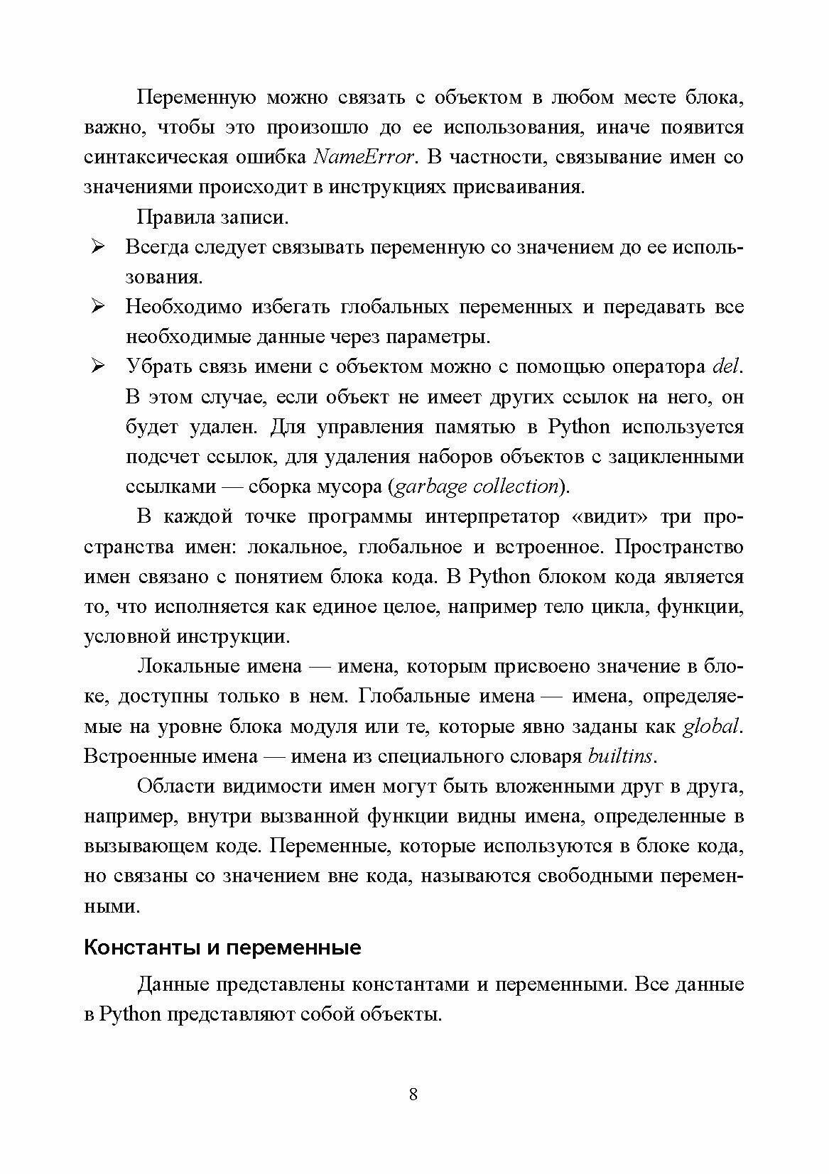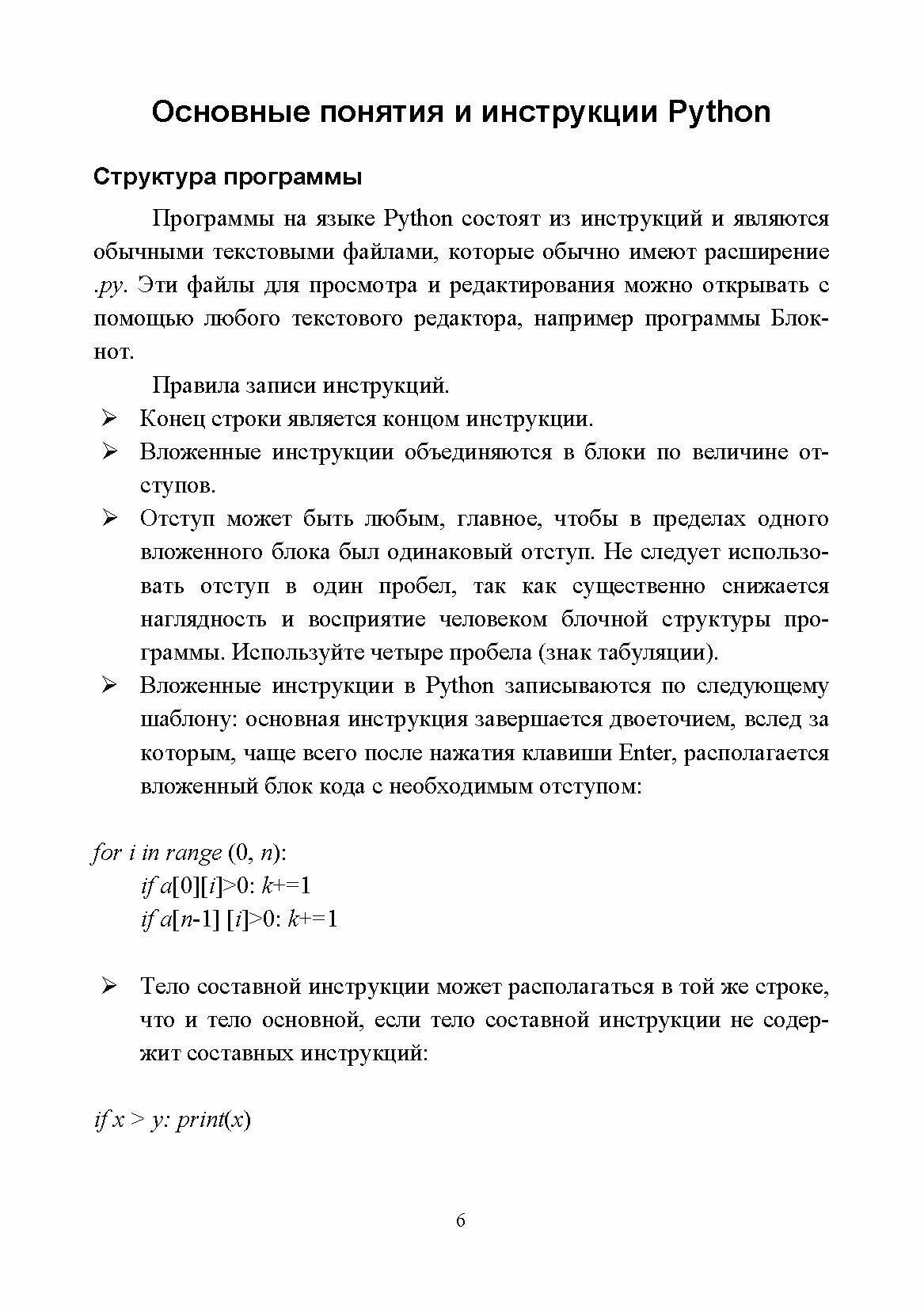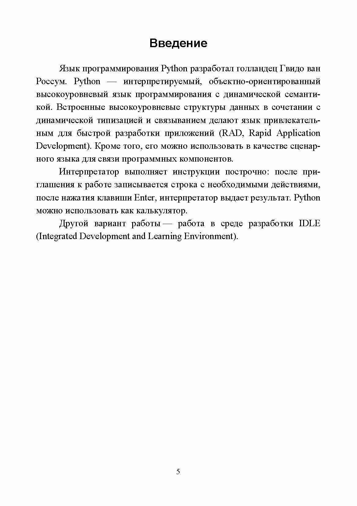 Пособие посвящено рассмотрению базовых конструкций языка Python, в частности, сначала приведены примеры простейших программ в императивном стиле программирования и примеры решения несложных задач линейной, разветвляющейся и циклической структуры, задач с последовательностями и файлами. Далее дана реализация в виде программ на Python алгоритмов методов вычислительной математики. Большое внимание уделено практике использования библиотек numpy, matplotlib, pandas и turtle, для анализа данных и их графической интерпретации.