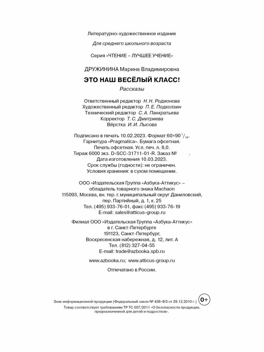 Это наш весёлый класс! Рассказы о школе (Дружинина Марина Владимировна); Махаон Издательство, 2023