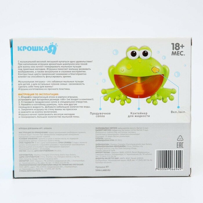 Крошка Я Игрушка для игры в ванне Лягушка пузыри