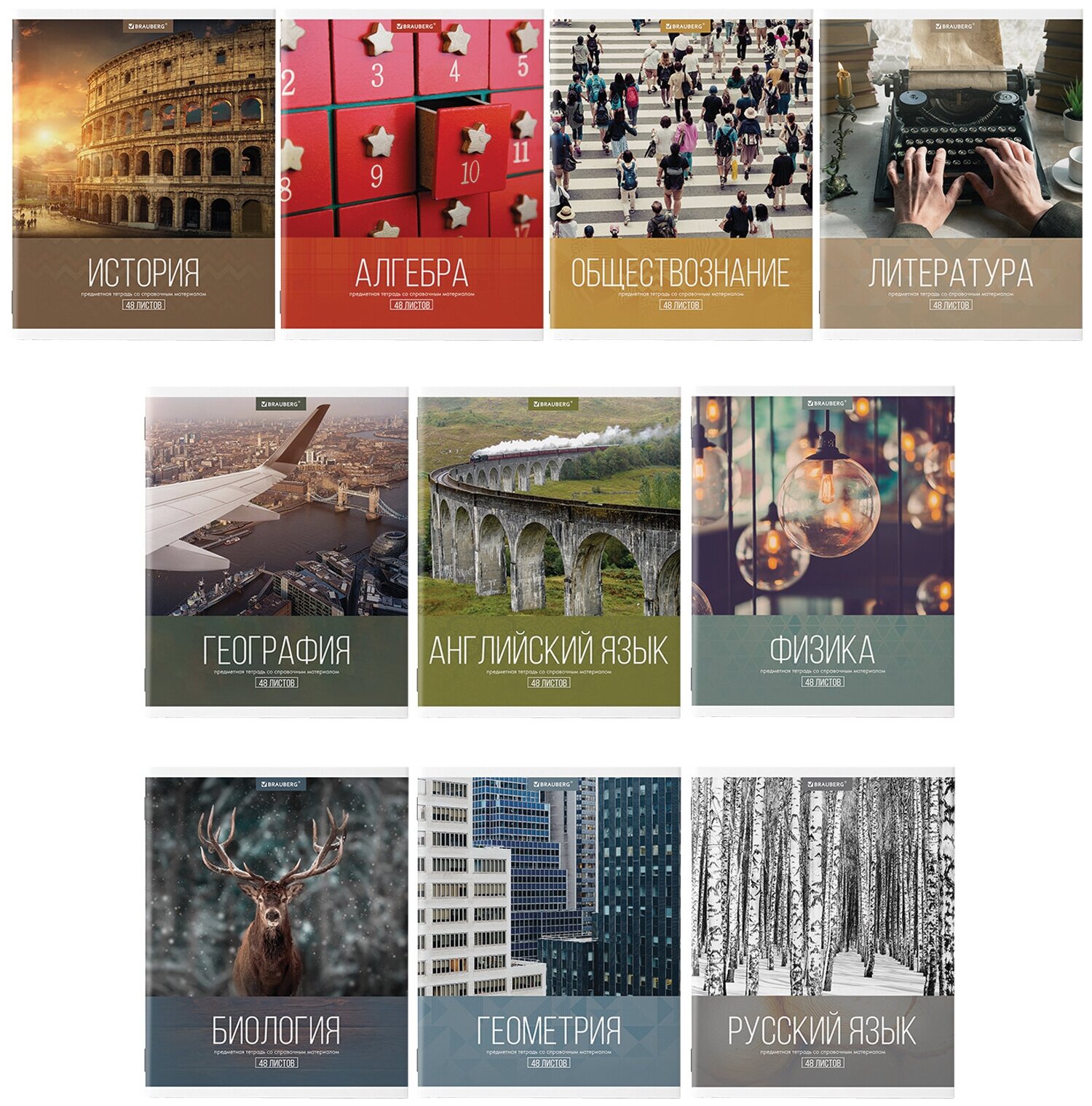 Тетрадь клетка/линия A5 48 листов скоба поля обложка мелованный картон комплект 10 предметов BRAUBERG (404025) Тетради предметные Классика Xxi (48 листов) 10 предметов