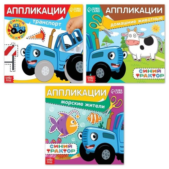 Набор из 3-х книжек-аппликаций Синий трактор (без автора); Буква-ленд, 2021