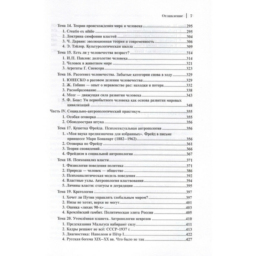 Используются социально-антропологические подходы к трактовкам происхождения мира и человека (Библия, Евангелия, Ч. Дарвин, И. П. Павлов). Предлагается практикум по социальной антропологии: психосексуальные этюды, проблемы кратологии, мутации политических элит Запада и Востока, скатывание к дегенерации поколения чайлдфри.