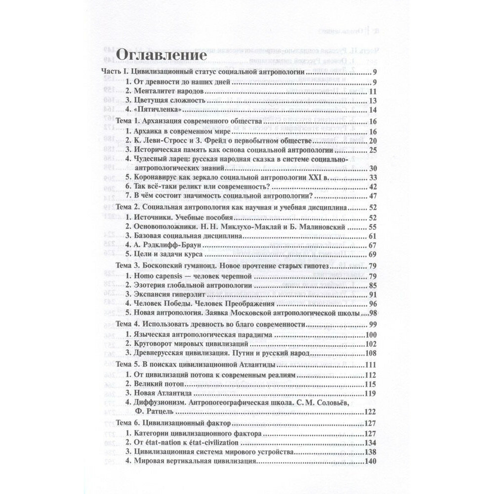 Впервые раскрывается смысл и значение для современности Русской школы социальной антропологии (В. Н. Татищев, Н. Н. Миклухо-Маклай, С. М. Соловьёв, Н.Я. Данилевский, К.Н. Леонтьев, К.Д. Кавелин, Н.Г. Чернышевский, С.Н. Широкогоров, Л. Н. Гумилёв, Ю.М. Бромлей, В. А. Тишков).
