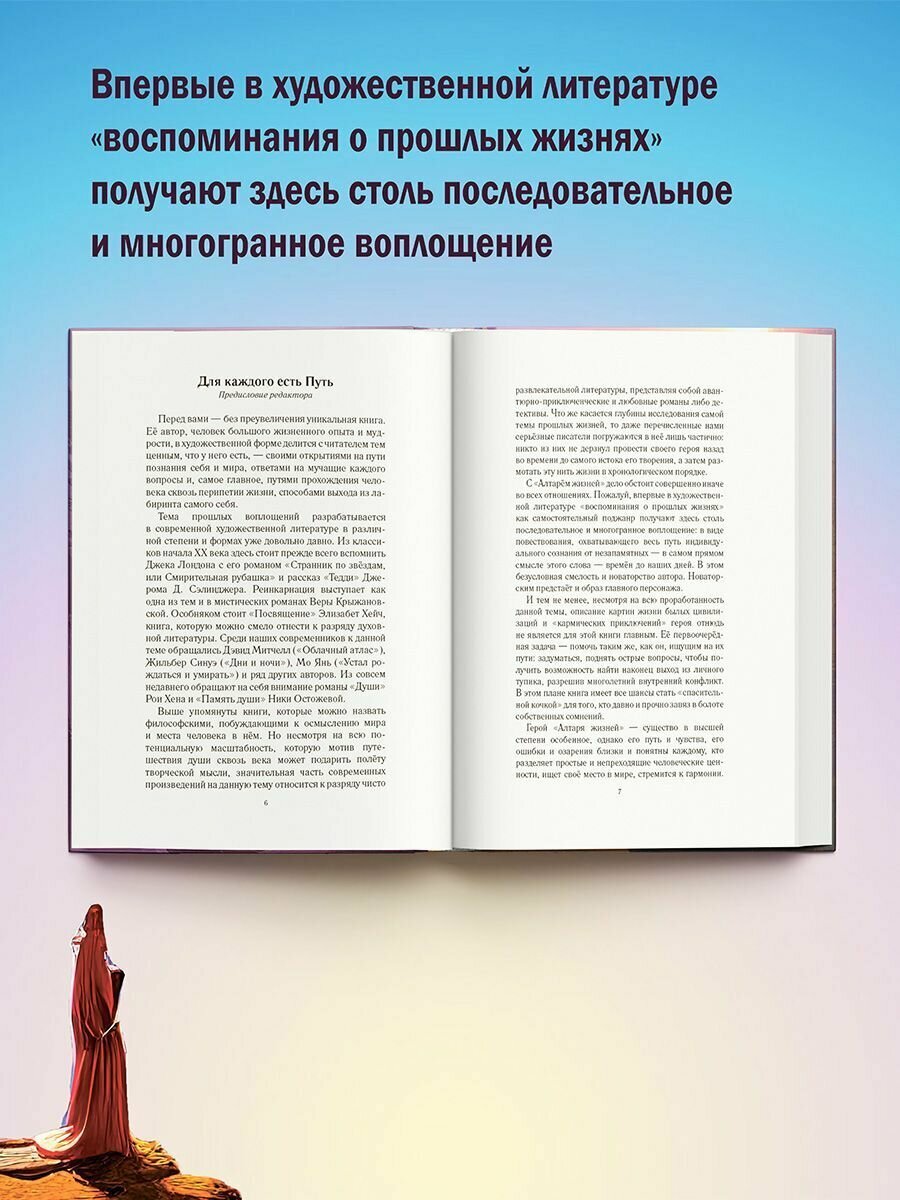 -  Байкова Анна- 30 марта 20235/5 Книга глубокая, о становлении Духа, о Пути. Погружает в проживание вместе героем. В тексте удаётся найти ответы на вопросы, которые звучат в сердце. Сущность, которая перевоплощается в разных эпохах, проходит свои уроки, неся тяжёлое бремя - пустоту в душе. Из жизни в жизнь ищутся ответы и возможность жить в свете и любви.
