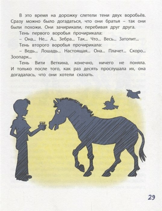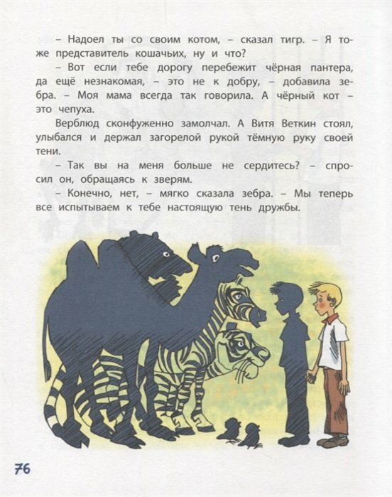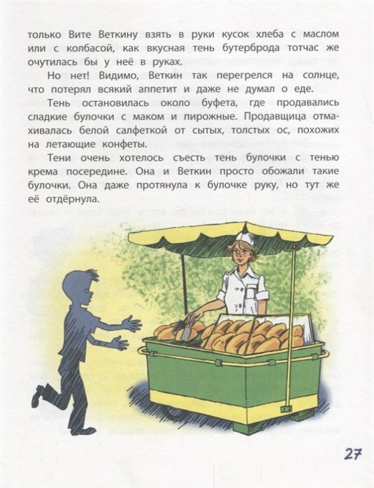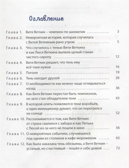 Эта увлекательная история о мальчике Витьке Веткине и его тени переносит читателя в мир фантазии и приключений. Главный герой – капризный, но вместе с тем обладает детской наивностью, которая заставила меня улыбнуться и полюбить его персонаж. Но произошло нечто странное и Витя решает отправиться на поиски своей тени. Рядом с ним, как ни странно, оказывается сама тень, которая сопровождает его в приключениях. Книга полна неожиданных событий, которые не оставят равнодушным ни одного ребенка.