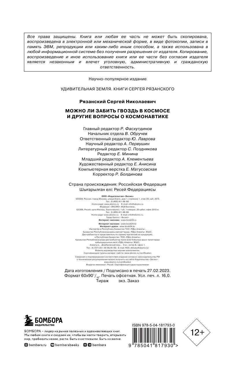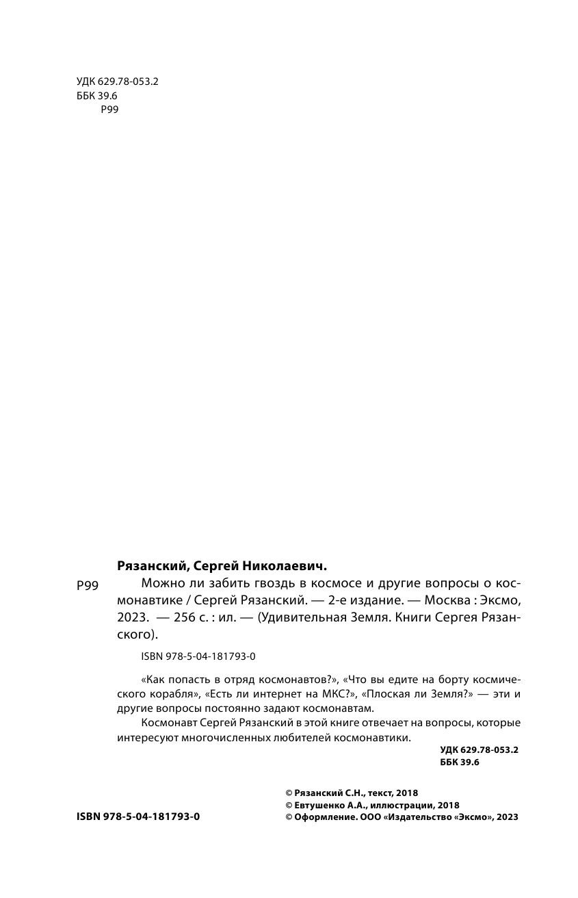 Можно ли забить гвоздь в космосе и другие вопросы о космонавтике. 2-е издание (Рязанский Сергей Николаевич); ООО "Издательство "Эксмо", 2023