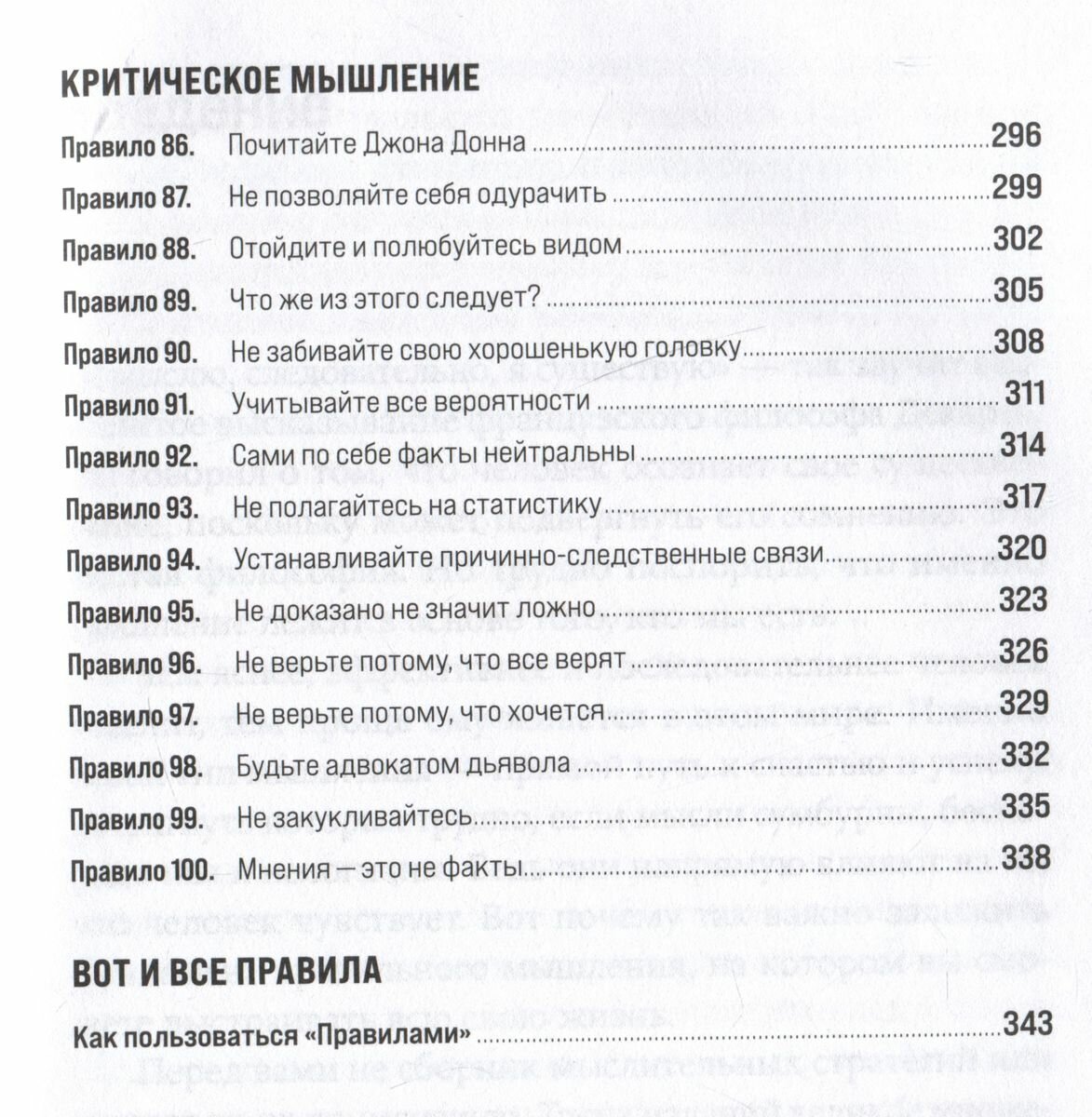 «Можете работать с книгой так, как захотите, но если вам нужен совет, то я рекомендую вот что. Пробегитесь по „Правилам“ и выберите из них три или четыре, которые, по вашему мнению, будут иметь большое значение для вас. Или остановитесь на тех, на которые сразу обратили внимание, как только прочитали. Или на тех, которые кажутся вам подходящей отправной точкой».