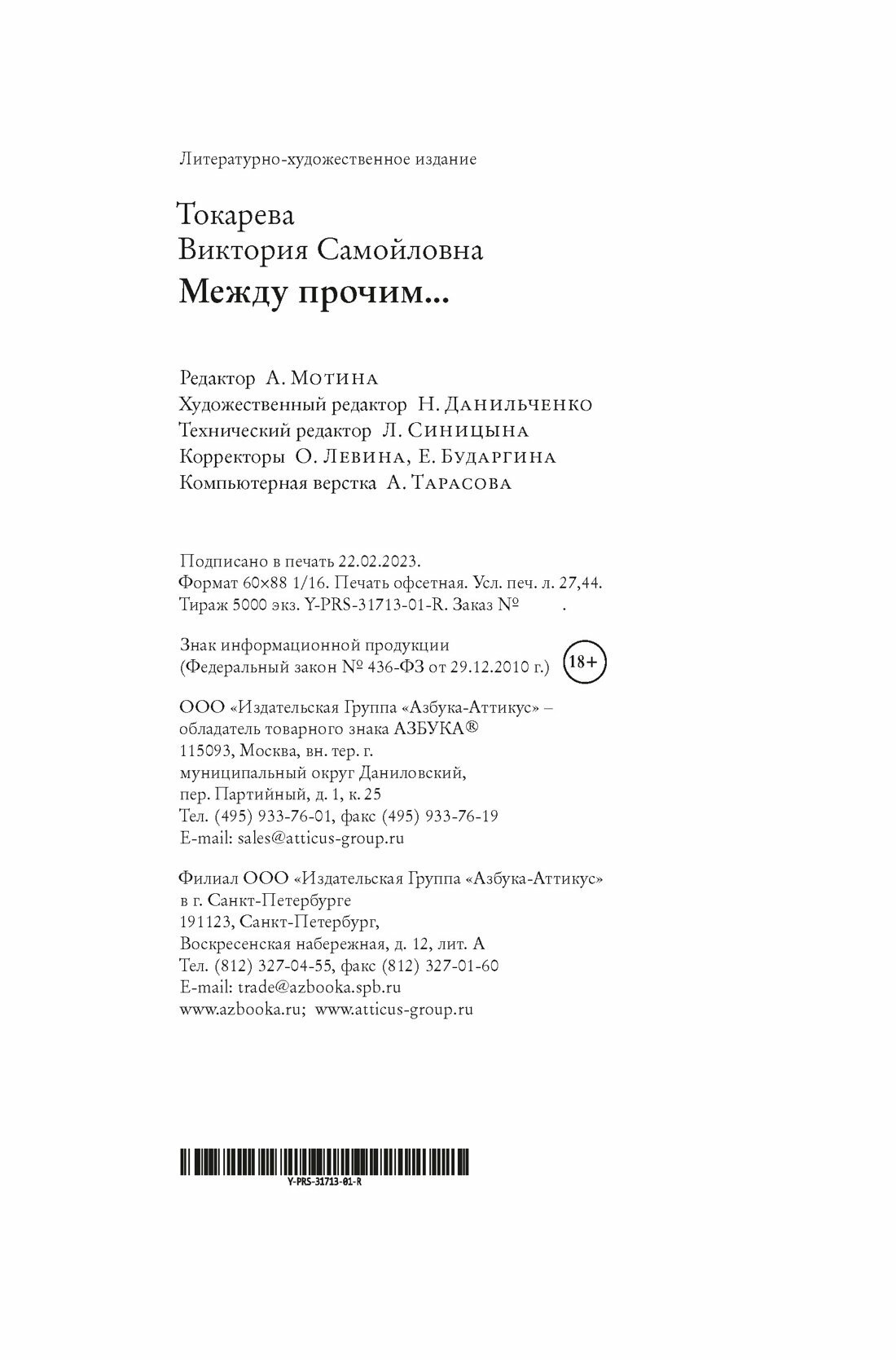 Книга: Между прочим... (Виктория Токарева); Азбука Издательство, 2023