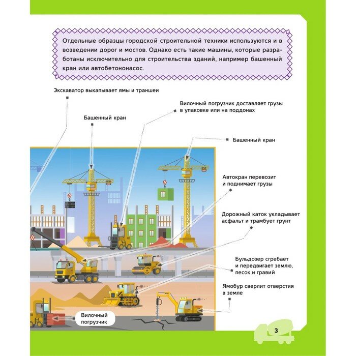 ребёнок увлечённо рассматривает книгу: здесь собрано множество строительной техники, подробно и интересно рассказано о её предназначении и детализировано, как она устроена.