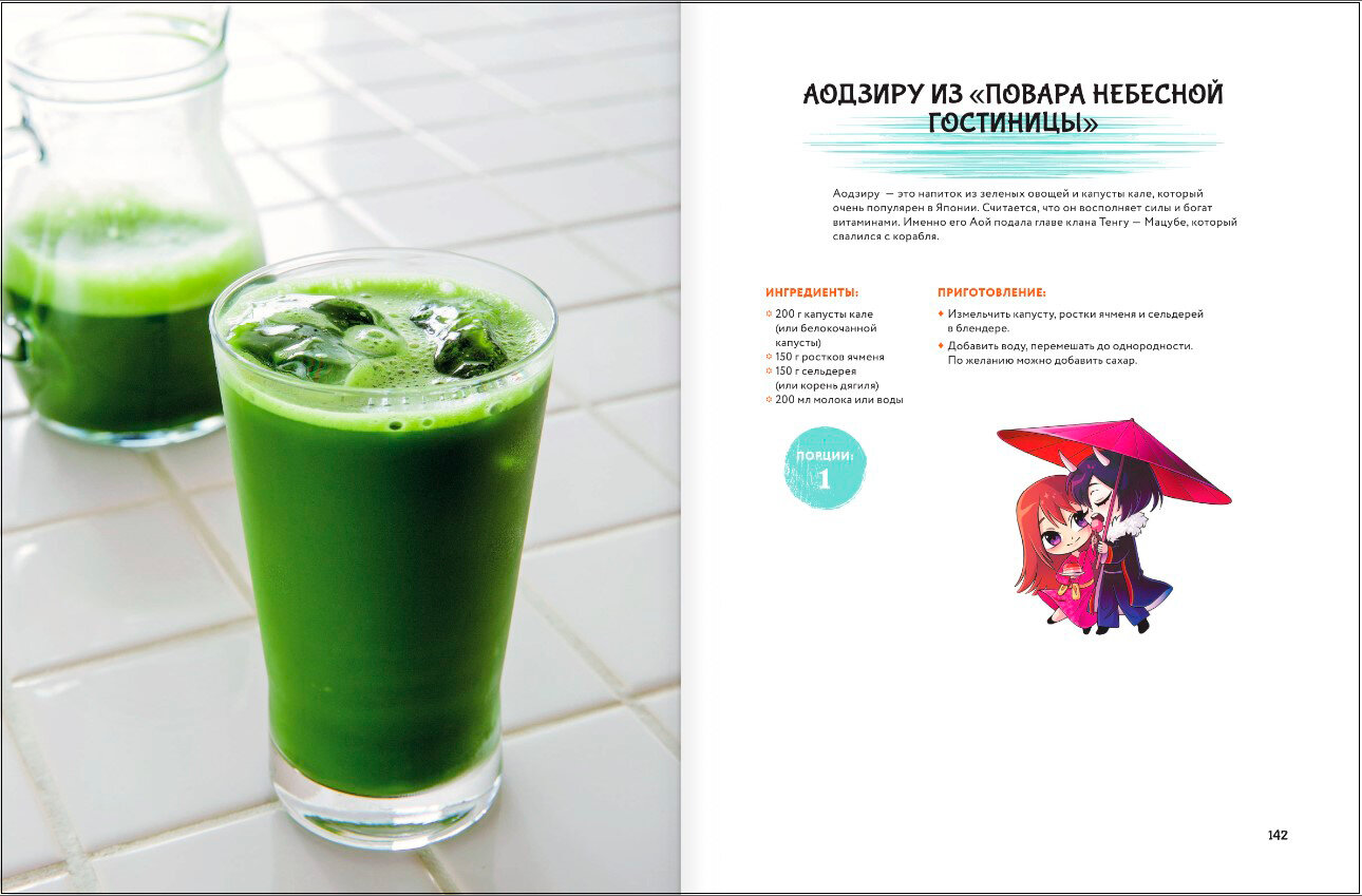 Книга великолепная! Очень красивая, оригинально оформленная, с аппетитными фотографиями готовых блюд и симпатичными миниатюрными персонажами аниме, по которым данные блюда приготовлены. Станет прекрасным подарком любителям аниме, любителям Страны Восходящего Солнца, любителям кулинарии. Рецепты в основном простые, которые можно повторить на кухне, порадовав себя, друзей и близких. Рекомендую! Оценка: 5+.